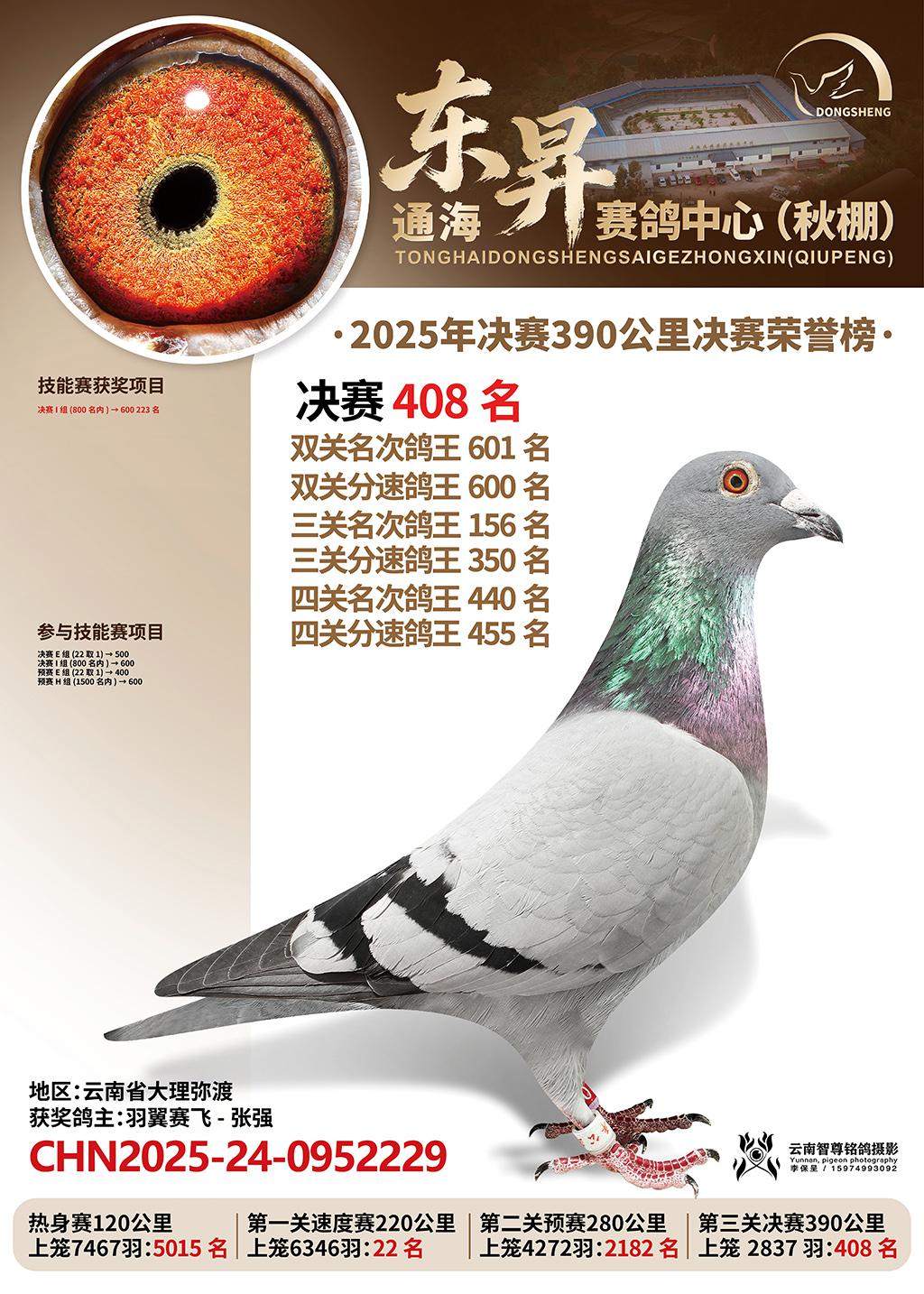 通海东昇赛鸽中心2025决赛408名羽翼赛飞-张强CHN2025-24-0952229云南省大理弥渡获奖鸽展示!