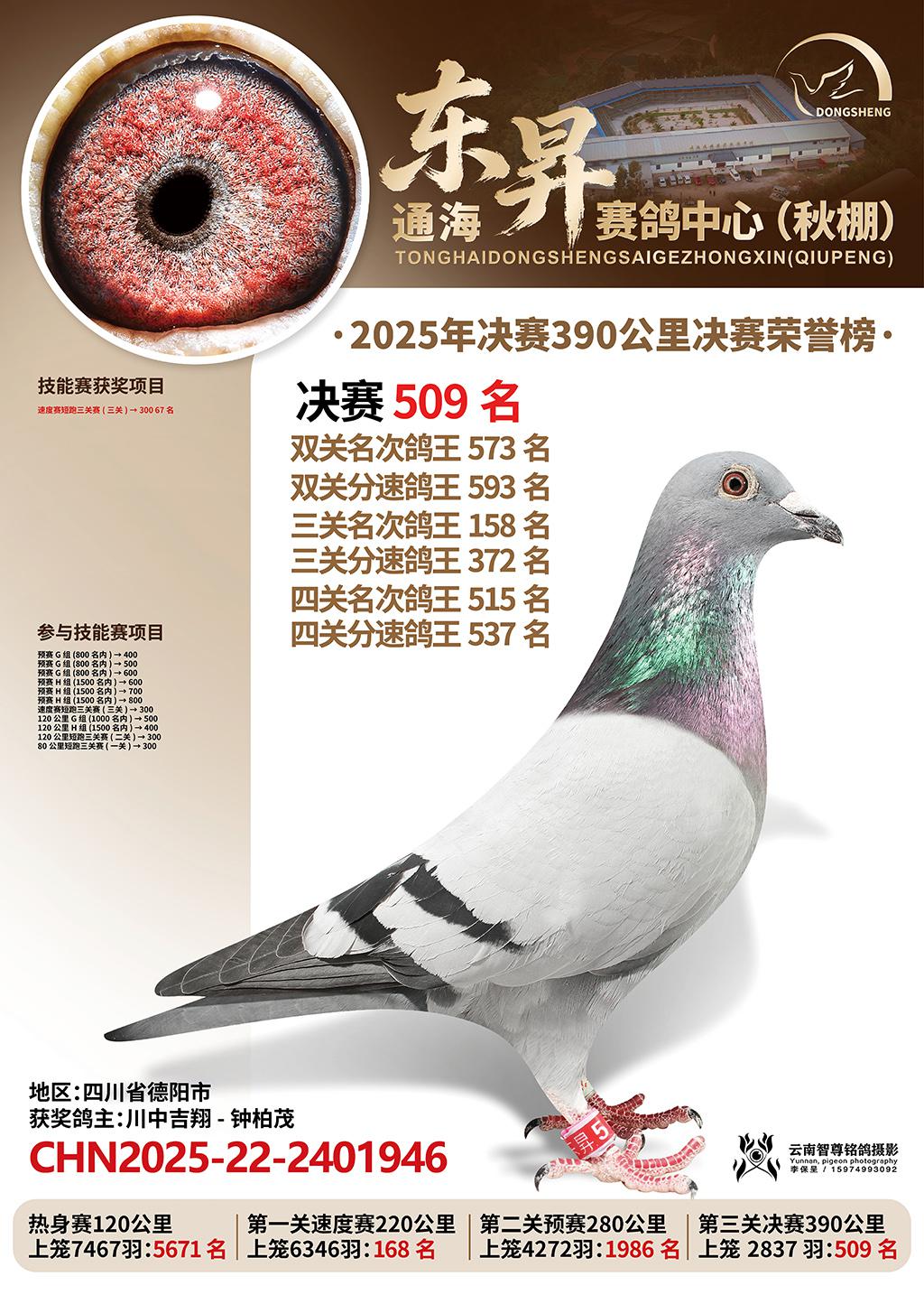通海东昇赛鸽中心2025决赛509名川中吉翔-钟柏茂CHN2025-22-2401946四川省德阳市获奖鸽展示!