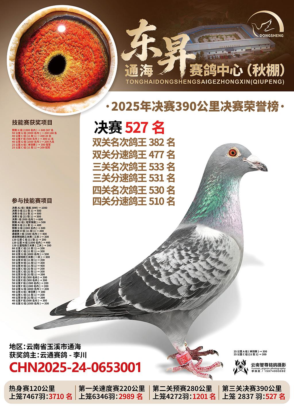 通海东昇赛鸽中心2025决赛527名云通赛鸽-李川CHN2025-24-0653001云南省玉溪市通海获奖鸽展示!