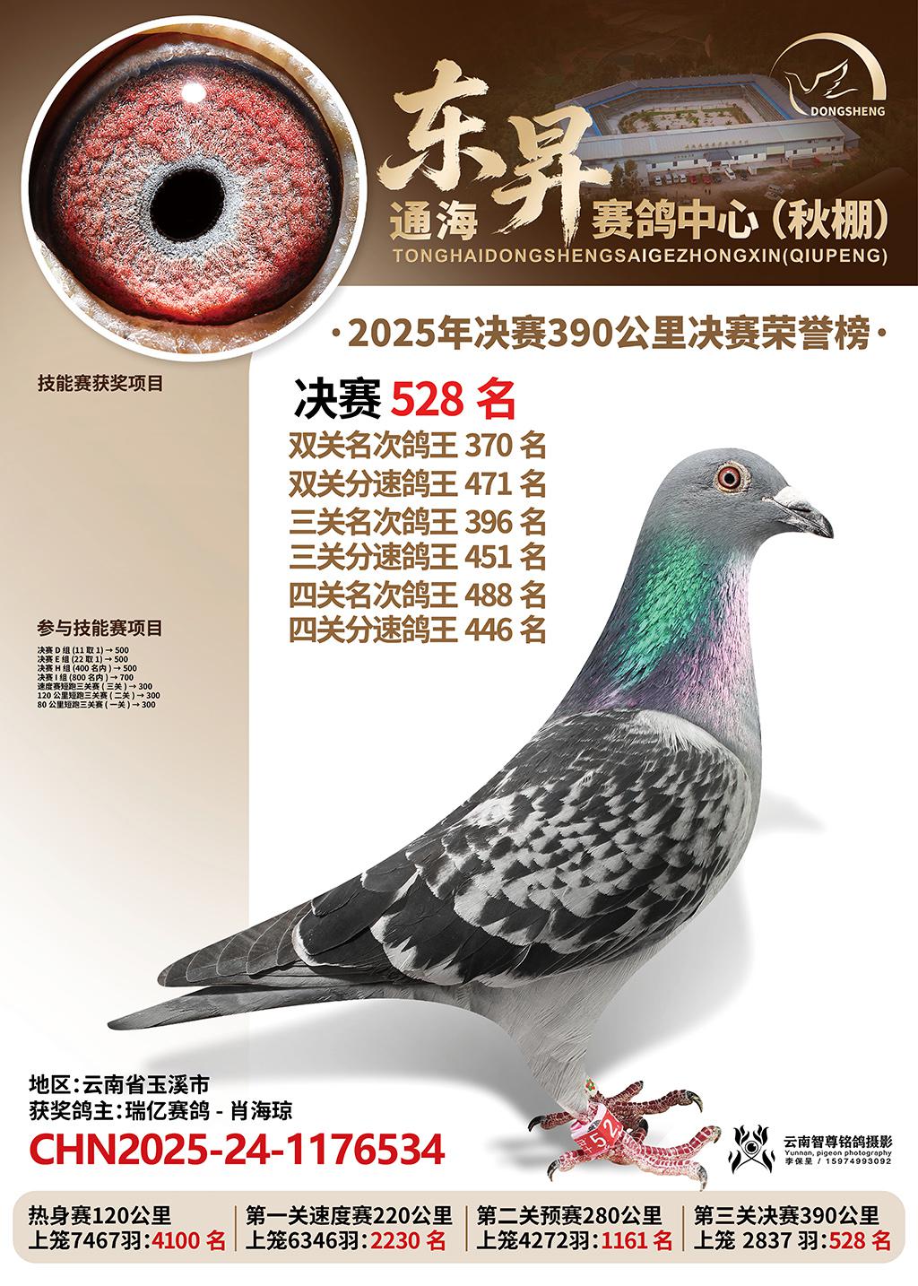 通海东昇赛鸽中心2025决赛528名瑞亿赛鸽-肖海琼CHN2025-24-1176534云南省玉溪市获奖鸽展示!