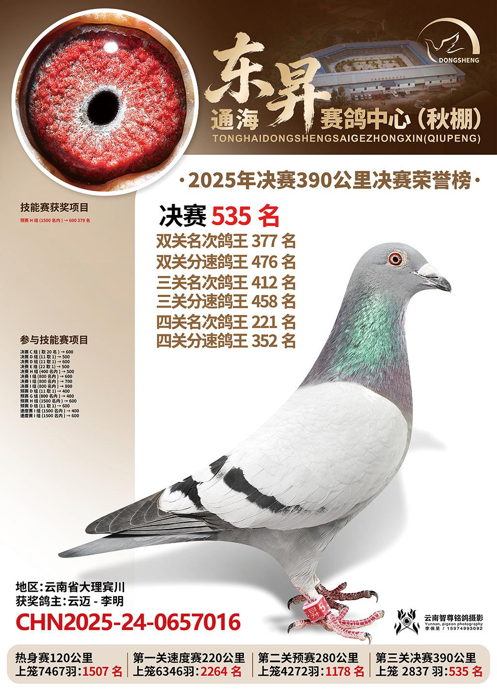 通海东昇赛鸽中心2025决赛535名云迈-李明CHN2025-24-0657016云南省大理宾川获奖鸽展示!