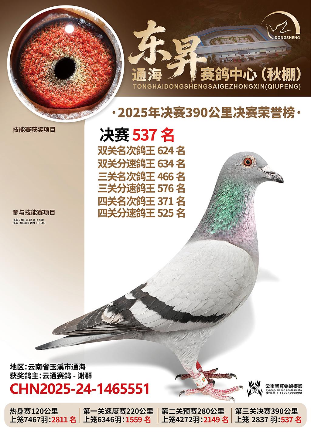 通海东昇赛鸽中心2025决赛537名云通赛鸽-谢群CHN2025-24-1465551云南省玉溪市通海获奖鸽展示!