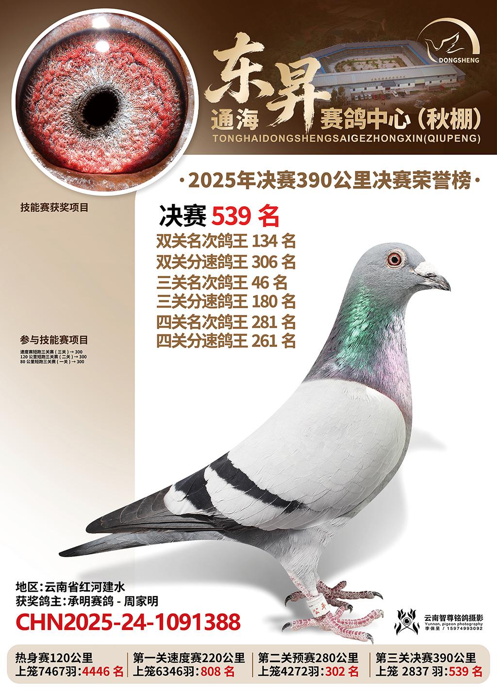 通海东昇赛鸽中心2025决赛539名承明赛鸽-周家明CHN2025-24-1091388云南省红河建水获奖鸽展示!