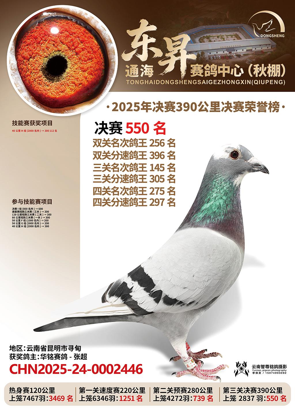 通海东昇赛鸽中心2025决赛550名华铭赛鸽-张超CHN2025-24-0002446云南省昆明市寻甸获奖鸽展示!