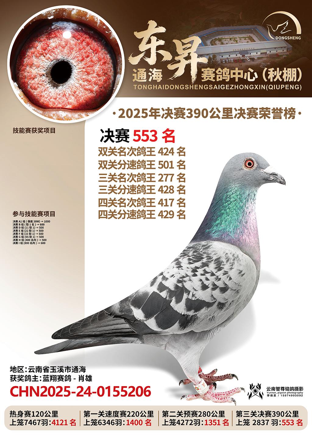 通海东昇赛鸽中心2025决赛553名蓝翔赛鸽-肖雄CHN2025-24-0155206云南省玉溪市通海获奖鸽展示!