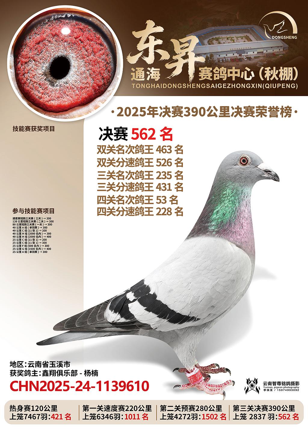 通海东昇赛鸽中心2025决赛562名鑫翔俱乐部-杨楠CHN2025-24-1139610云南省玉溪市获奖鸽展示!