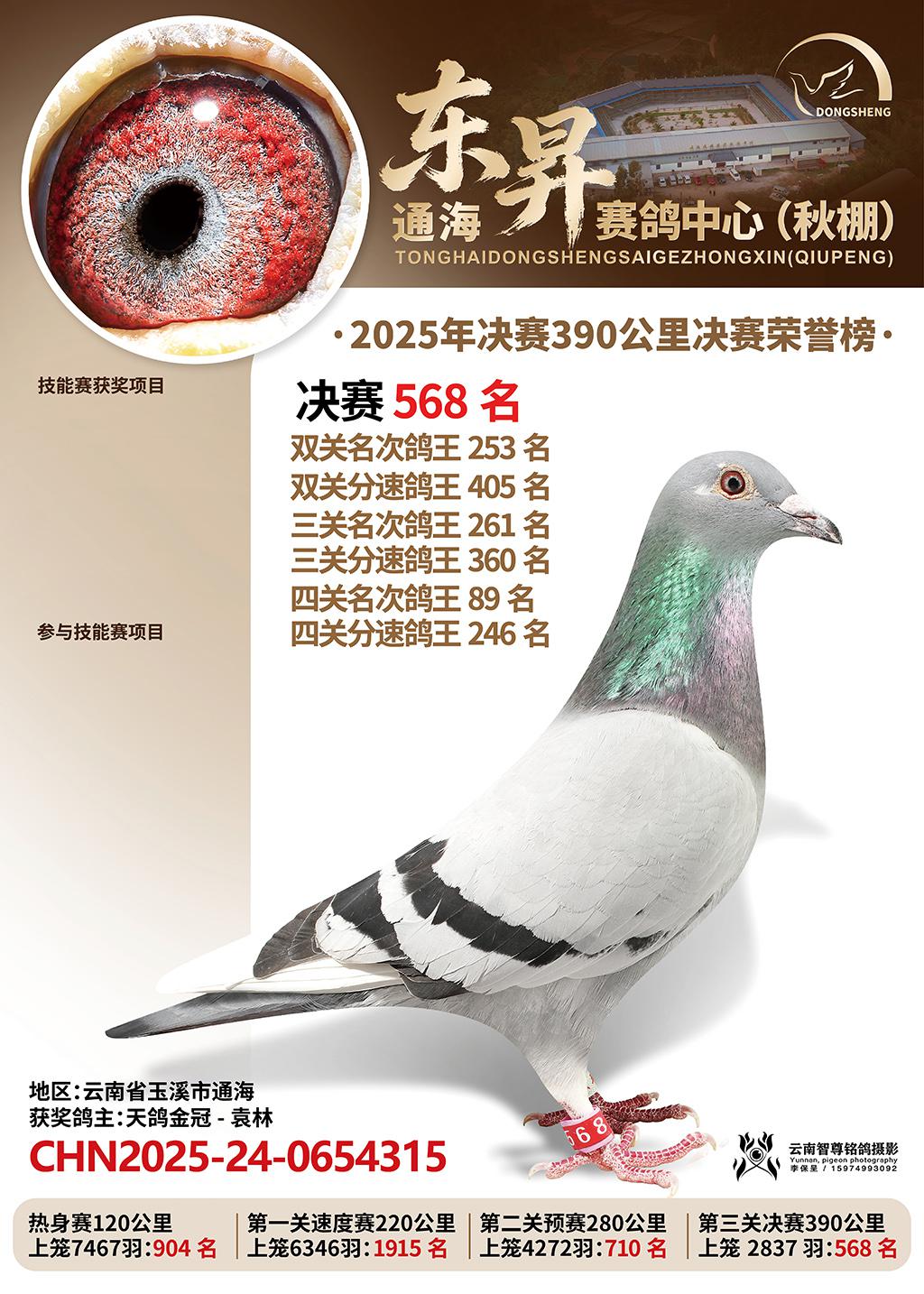 通海东昇赛鸽中心2025决赛568名天鸽金冠-袁林CHN2025-24-0654315云南省玉溪市通海获奖鸽展示!