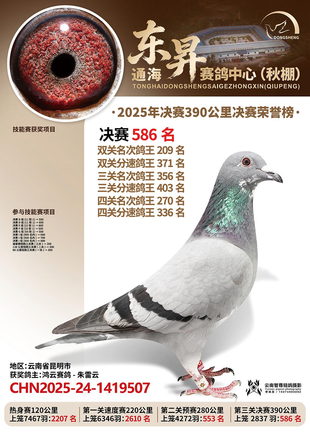 通海东昇赛鸽中心2025决赛586名鸿云赛鸽-朱雷云CHN2025-24-1419507云南省昆明市获奖鸽展示!