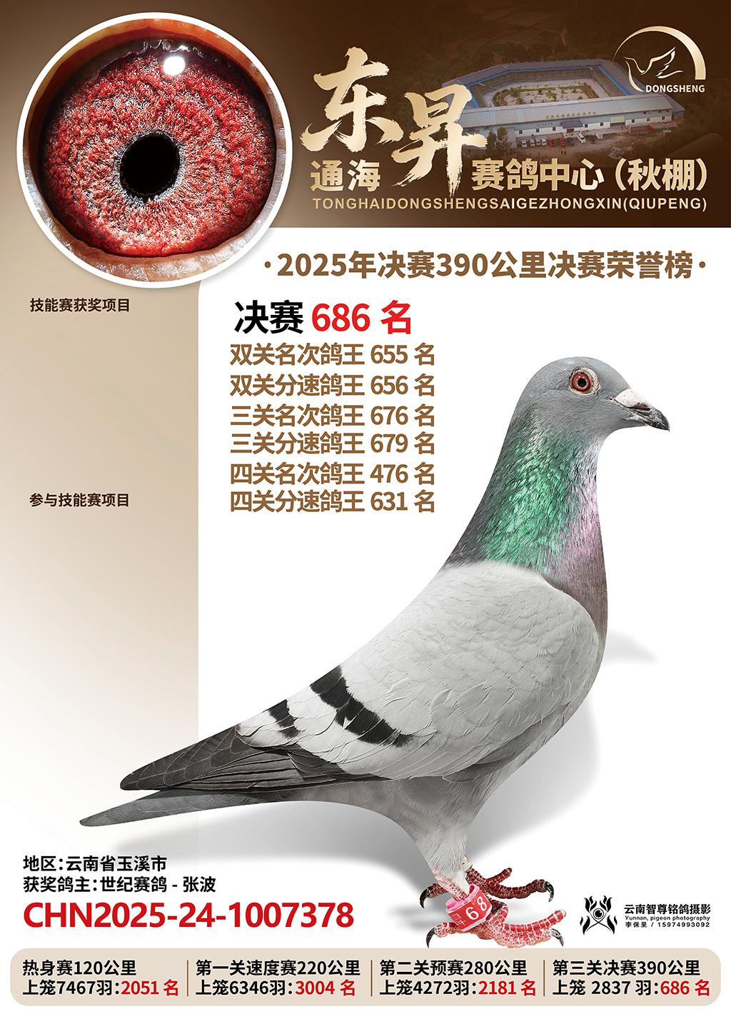 通海东昇赛鸽中心2025决赛686名世纪赛鸽-张波CHN2025-24-1007378云南省玉溪市获奖鸽展示!