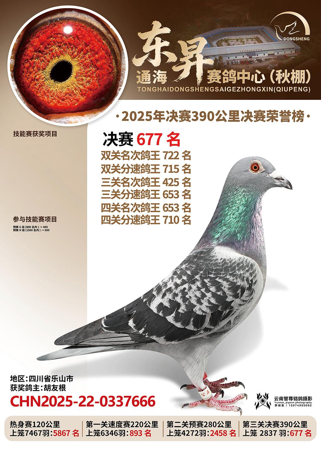 通海东昇赛鸽中心2025决赛677名胡友根CHN2025-22-0337666四川省乐山市获奖鸽展示!