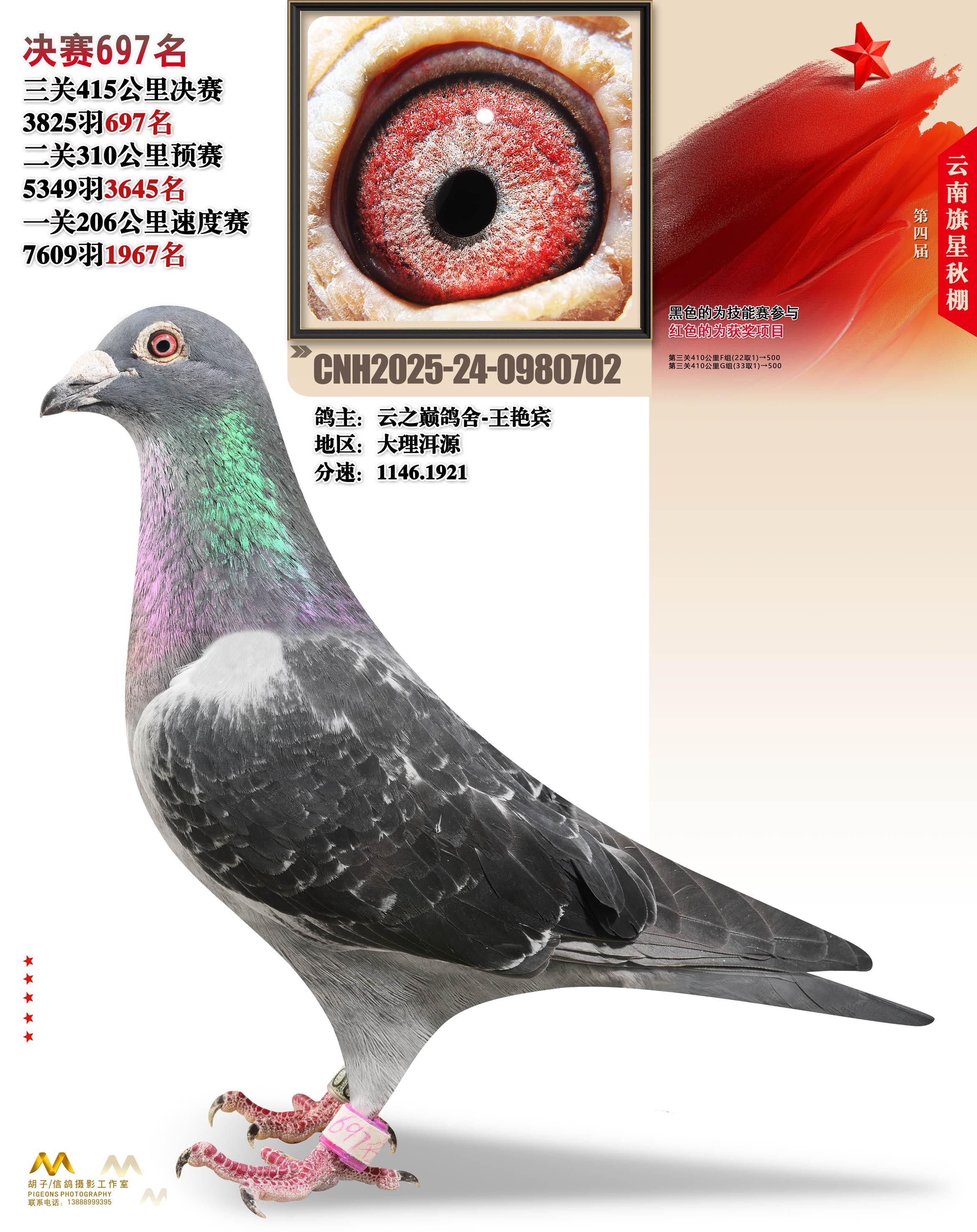 云南大理旗星赛鸽中心2025决赛697名云之巅鸽舍-王艳宾24-0980702大理洱源获奖鸽展示!