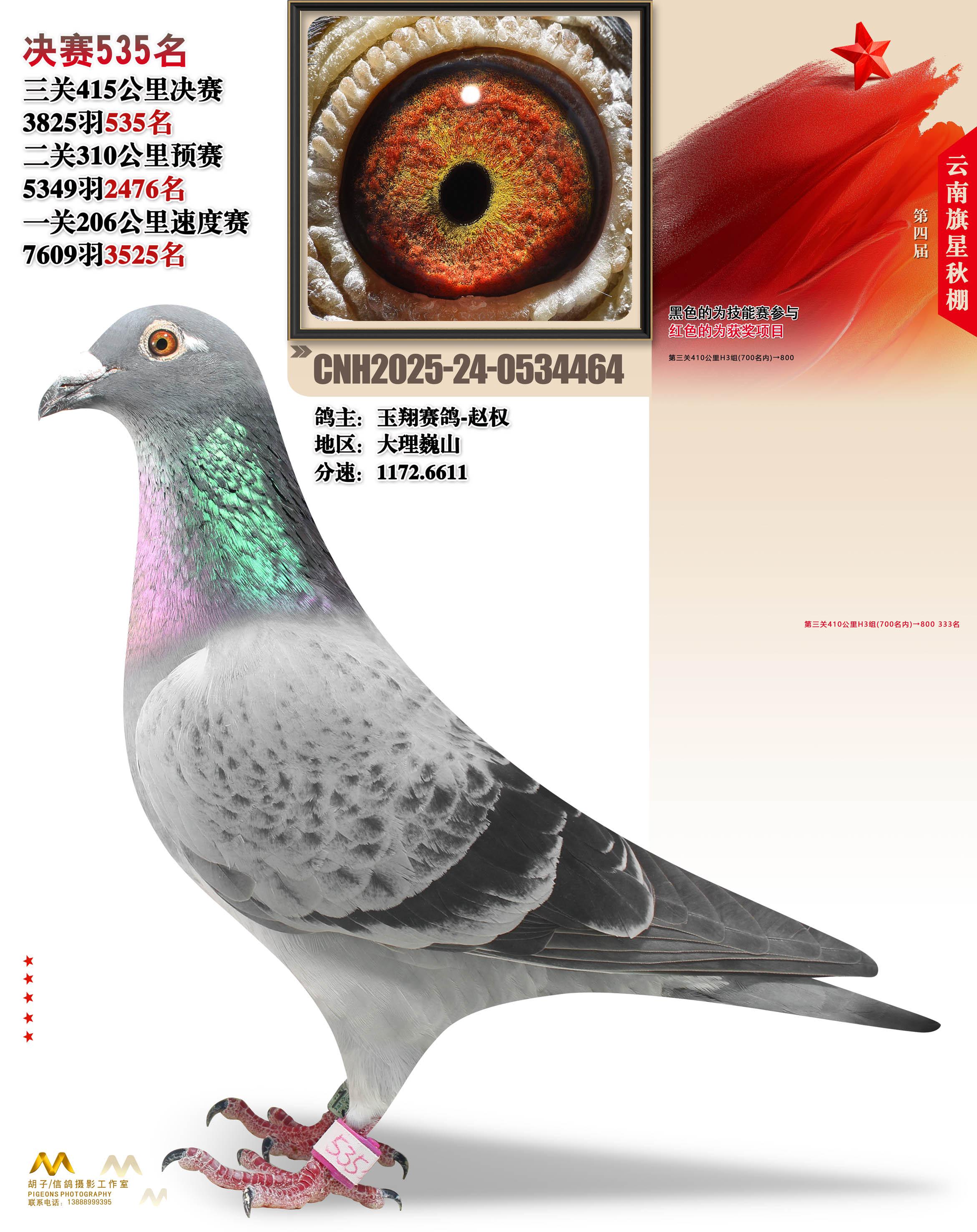 云南大理旗星赛鸽中心2025决赛535名玉翔赛鸽-赵权24-0534464大理巍山获奖鸽展示!