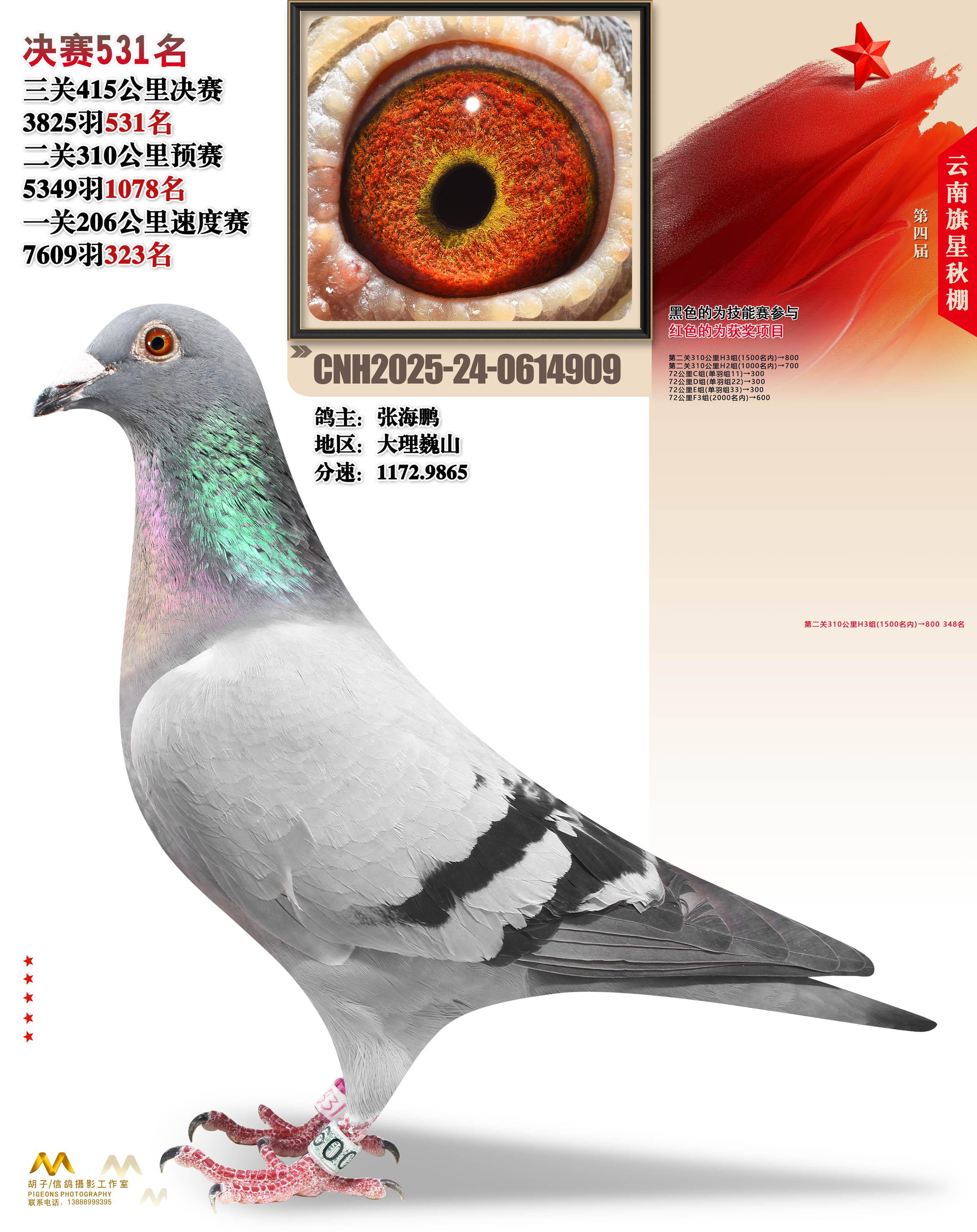 云南大理旗星赛鸽中心2025决赛531名张海鹏24-0614909大理巍山获奖鸽展示!