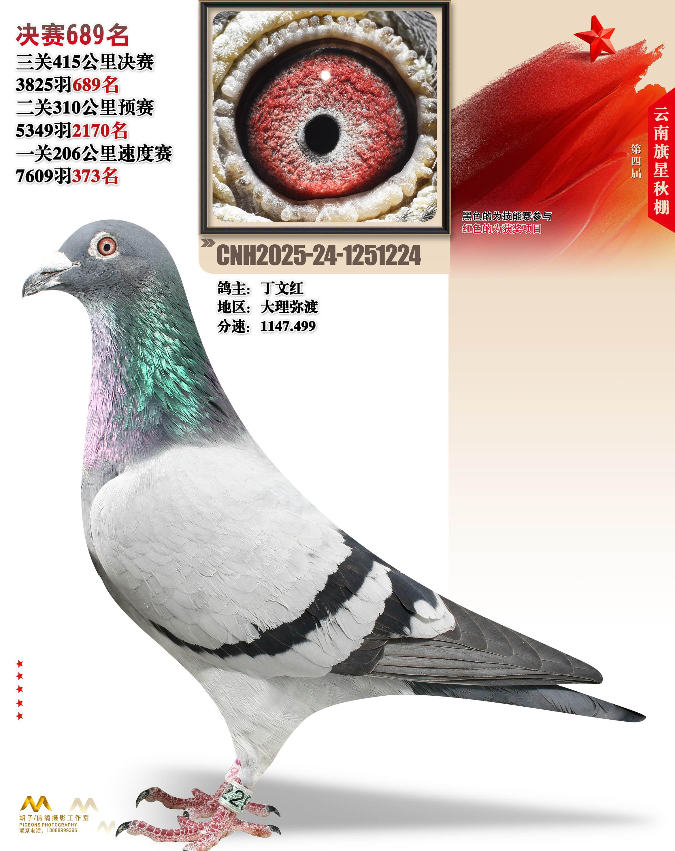 云南大理旗星赛鸽中心2025决赛689名丁文红24-1251224大理弥渡获奖鸽展示!