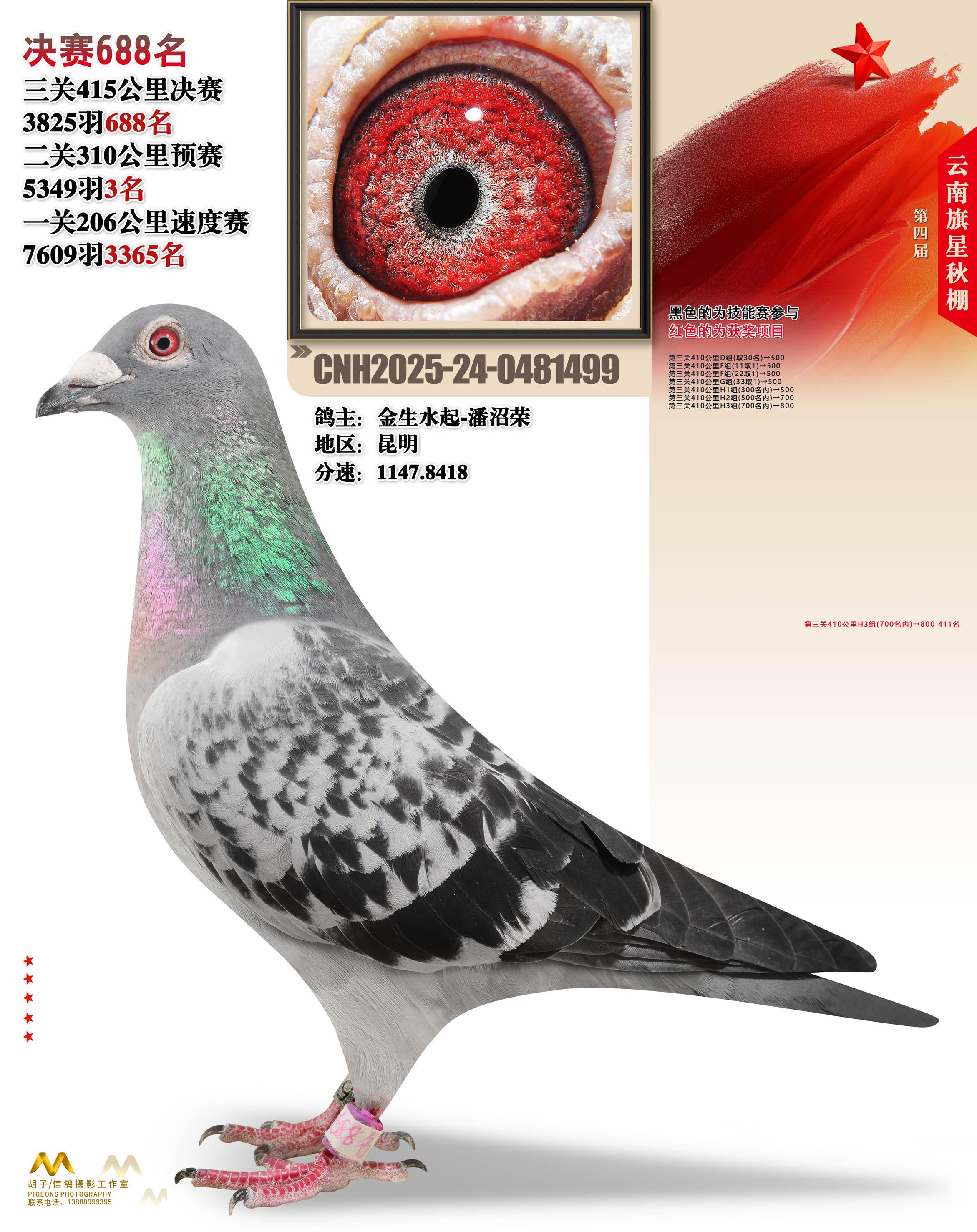 云南大理旗星赛鸽中心2025决赛688名金生水起-潘沼荣24-0481499昆明获奖鸽展示!