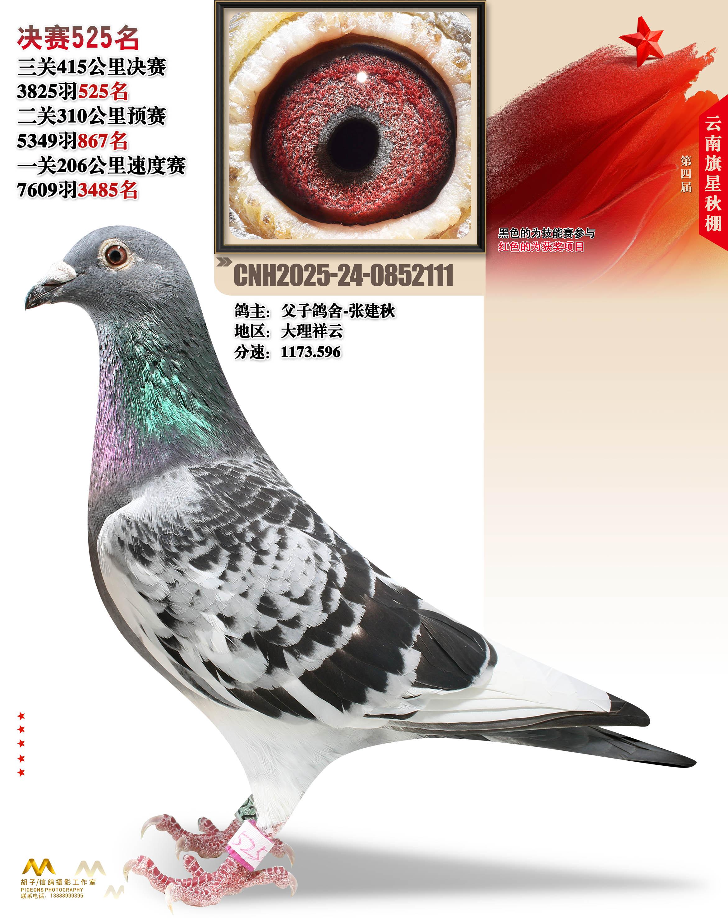 云南大理旗星赛鸽中心2025决赛525名父子鸽舍-张建秋24-0852111大理祥云获奖鸽展示!