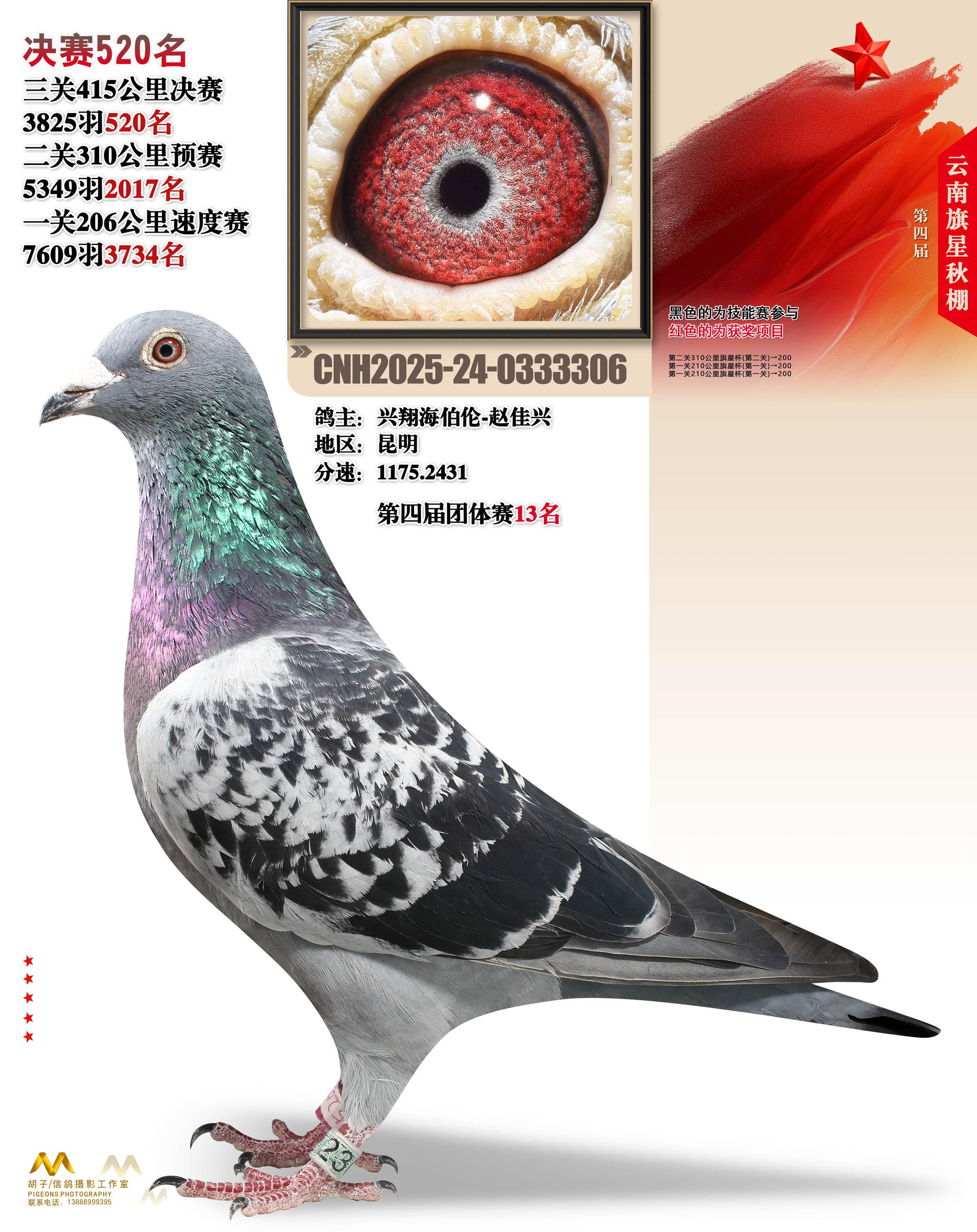 云南大理旗星赛鸽中心2025决赛520名兴翔海伯伦-赵佳兴24-0333306昆明获奖鸽展示!