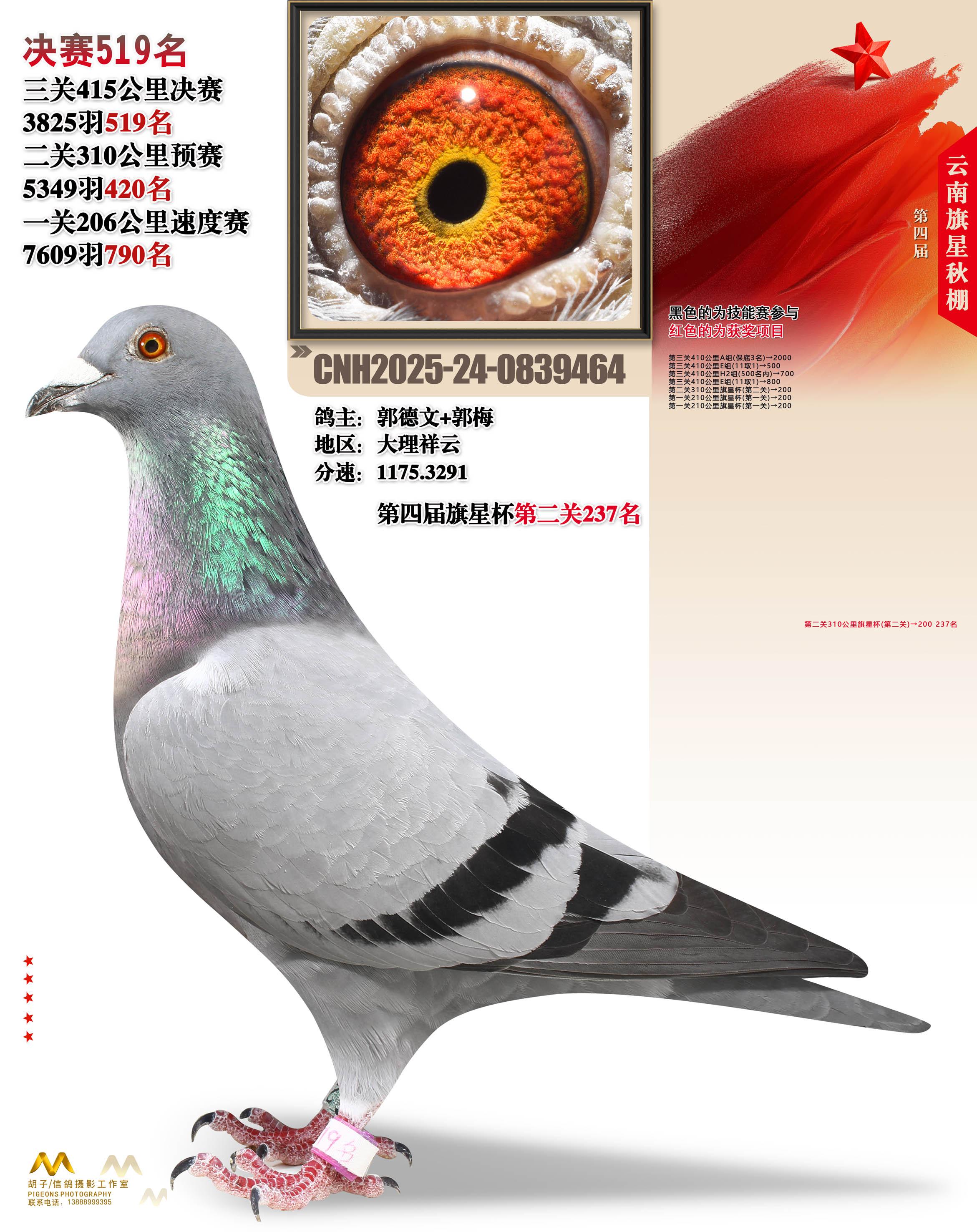 云南大理旗星赛鸽中心2025决赛519名郭德文+郭梅24-0839464大理祥云获奖鸽展示!