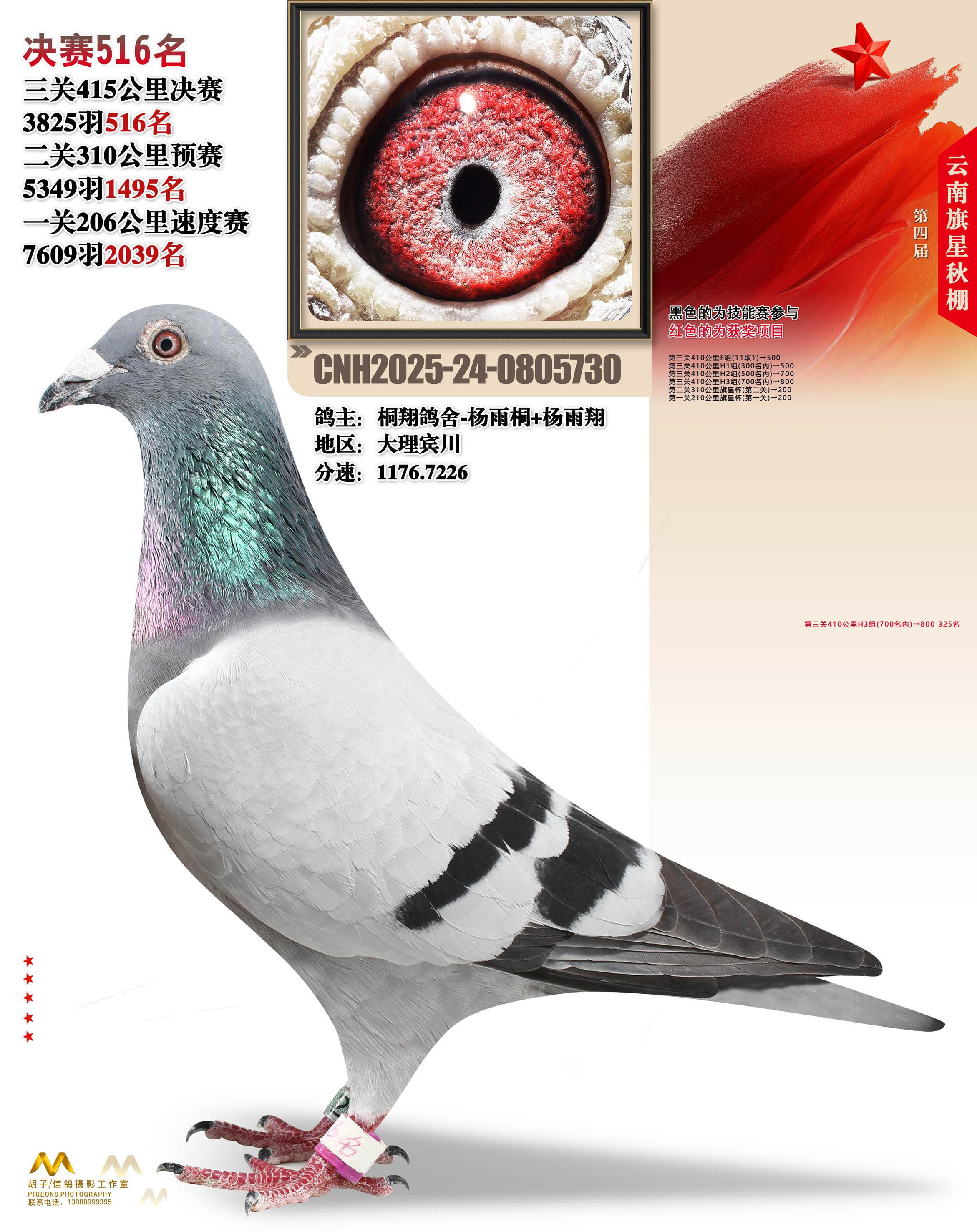 云南大理旗星赛鸽中心2025决赛516名桐翔鸽舍-杨雨桐+杨雨翔24-0805730大理宾川获奖鸽展示!