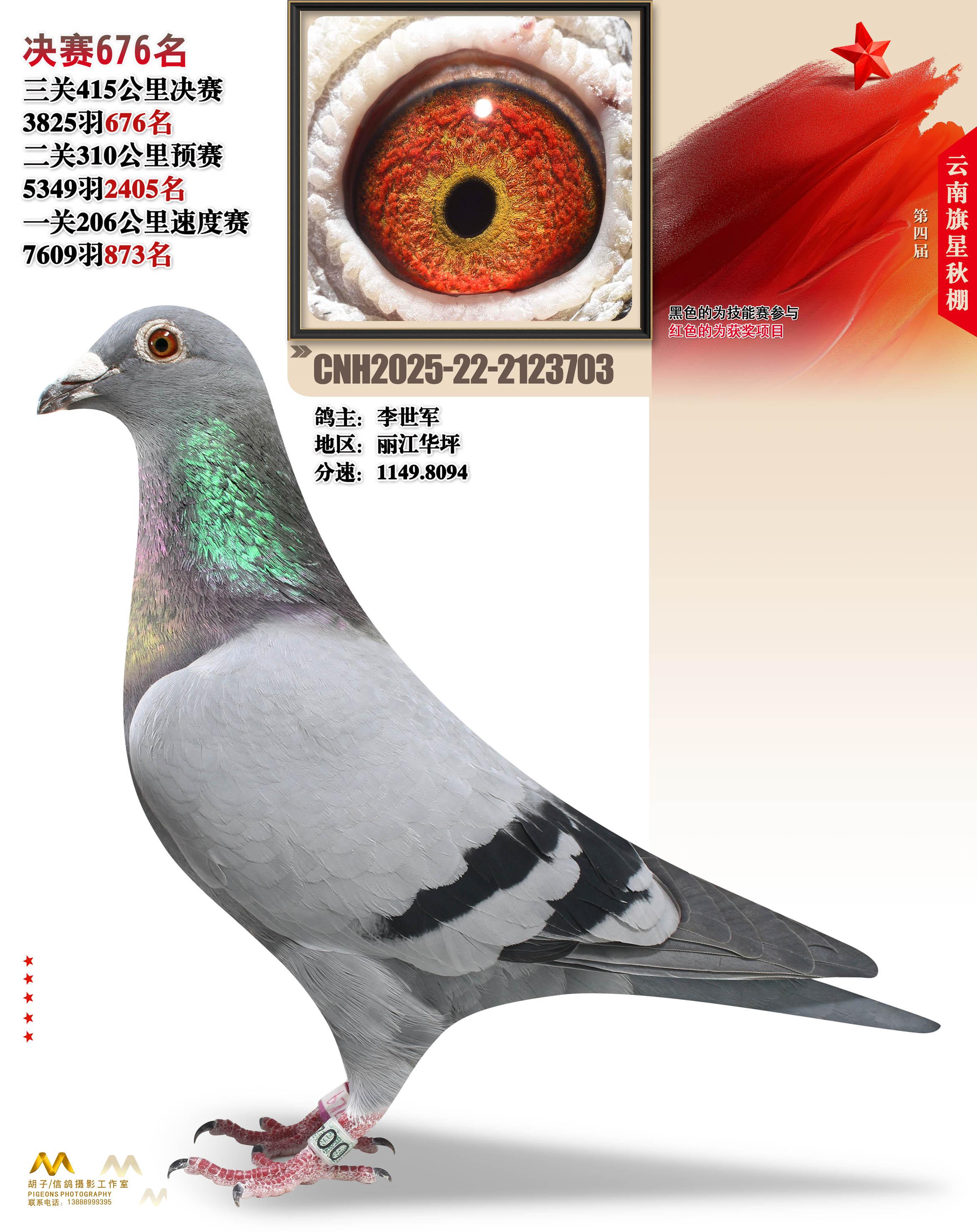 云南大理旗星赛鸽中心2025决赛676名李世军22-2123703丽江华坪获奖鸽展示!