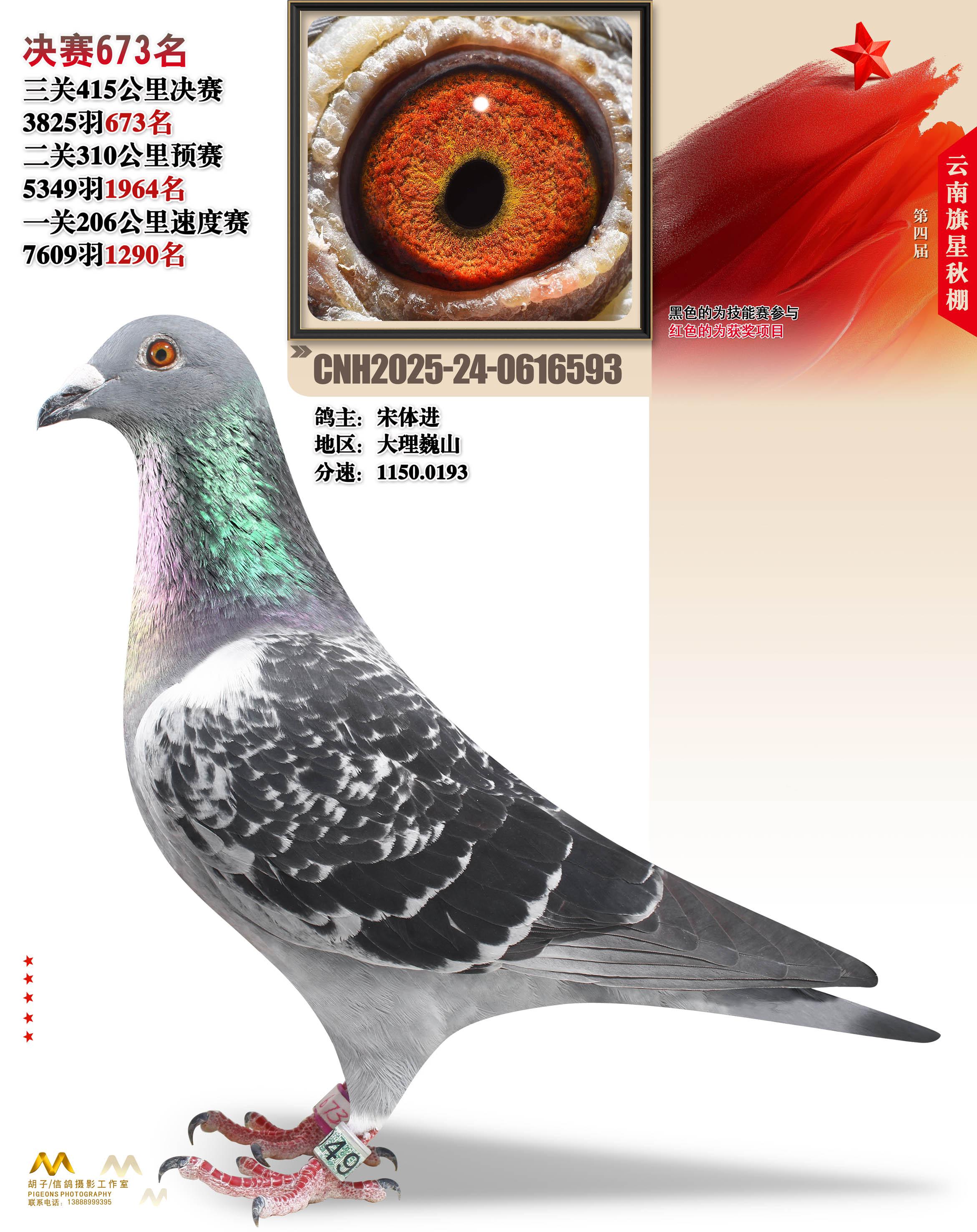云南大理旗星赛鸽中心2025决赛673名宋体进24-0616593大理巍山获奖鸽展示!