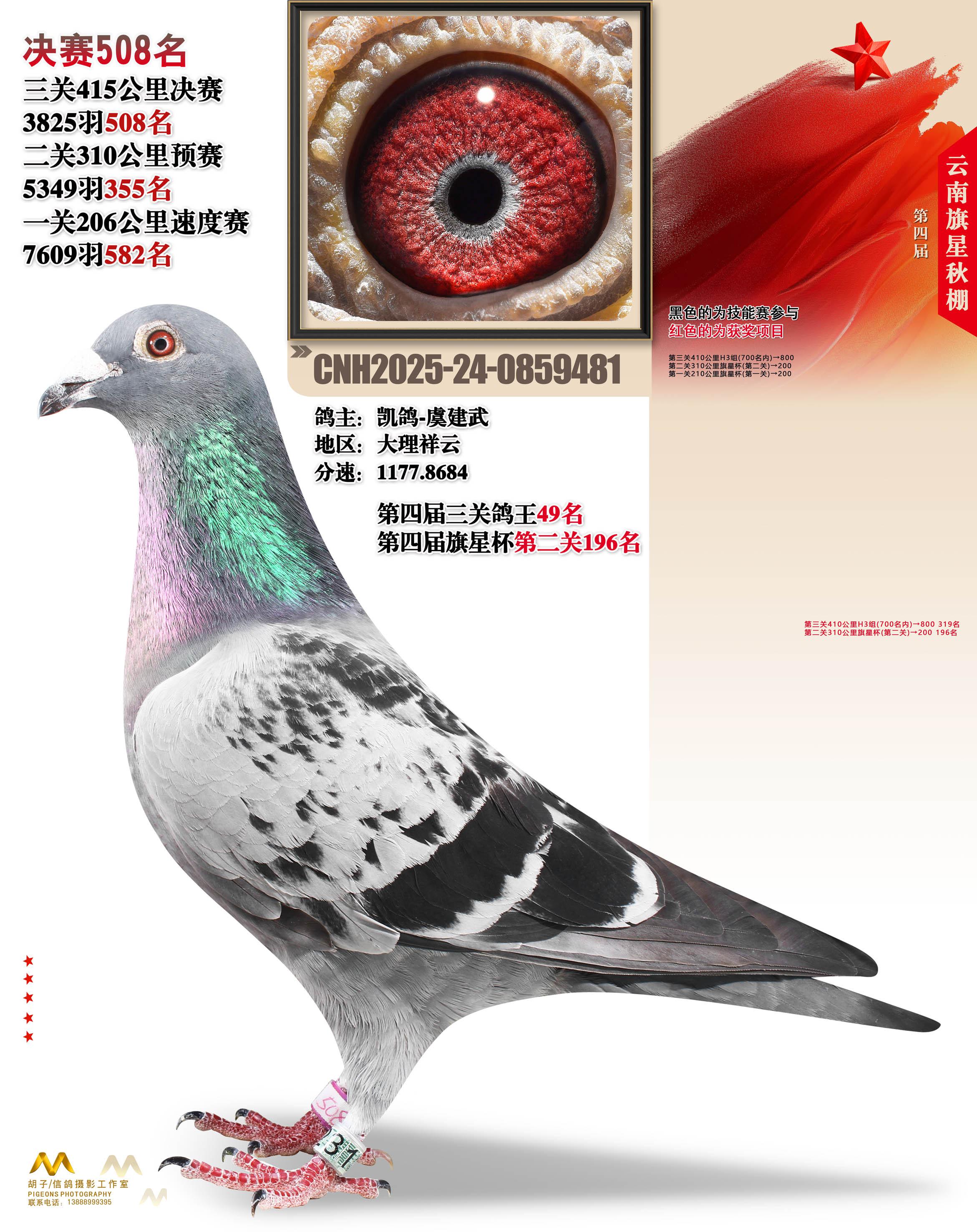 云南大理旗星赛鸽中心2025决赛508名凯鸽-虞建武24-0859481大理祥云获奖鸽展示!