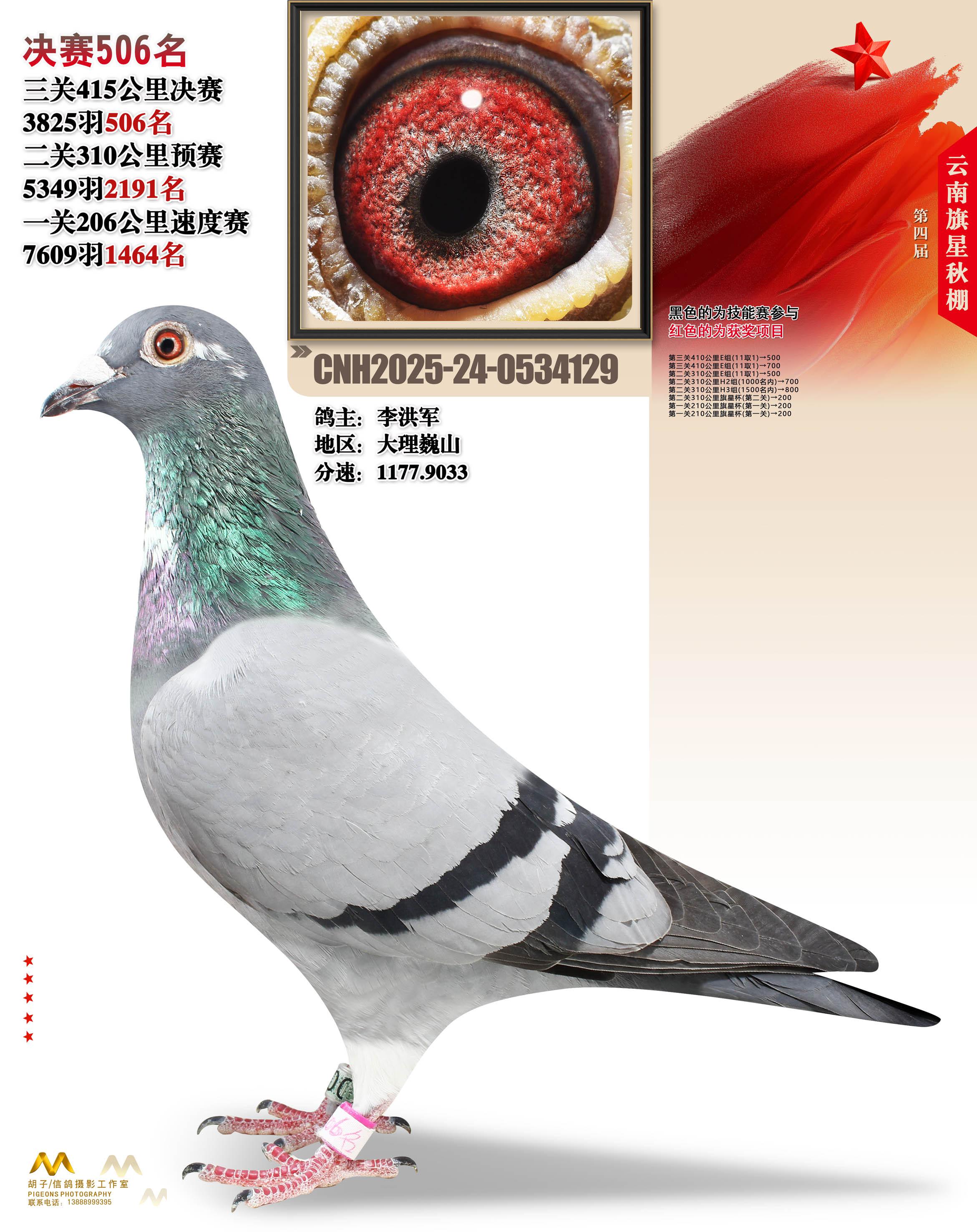云南大理旗星赛鸽中心2025决赛506名李洪军24-0534129大理巍山获奖鸽展示!