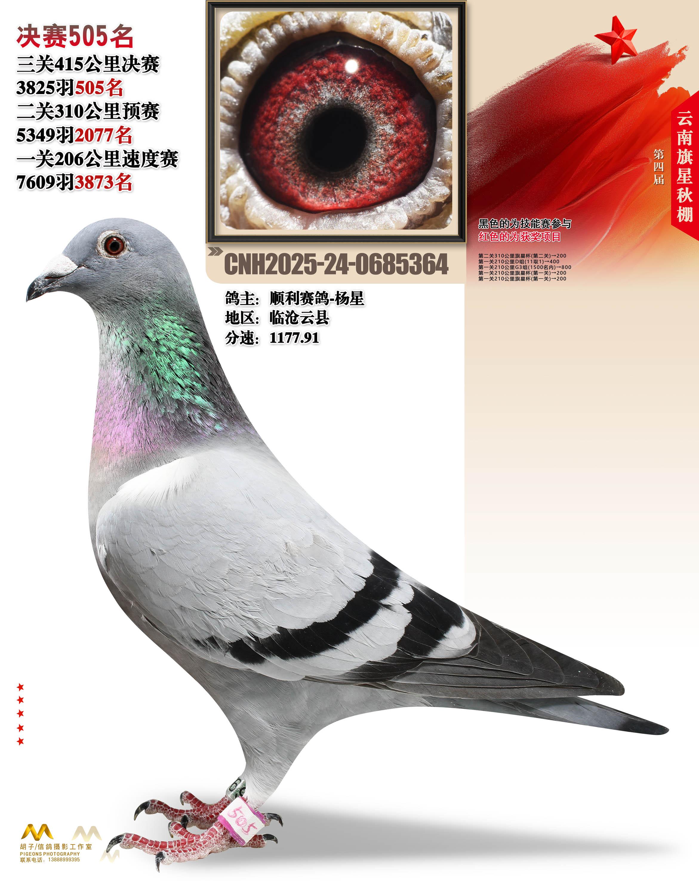 云南大理旗星赛鸽中心2025决赛505名顺利赛鸽-杨星24-0685364临沧云县获奖鸽展示!