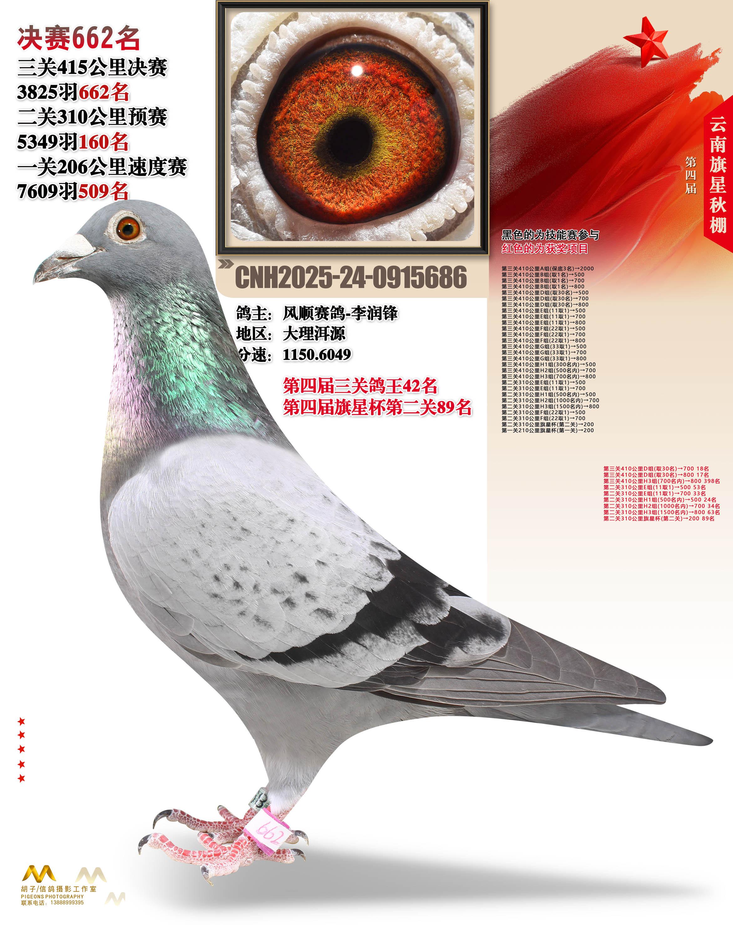位置:云南大理旗星赛鸽中心2025获奖鸽展示\决赛662名