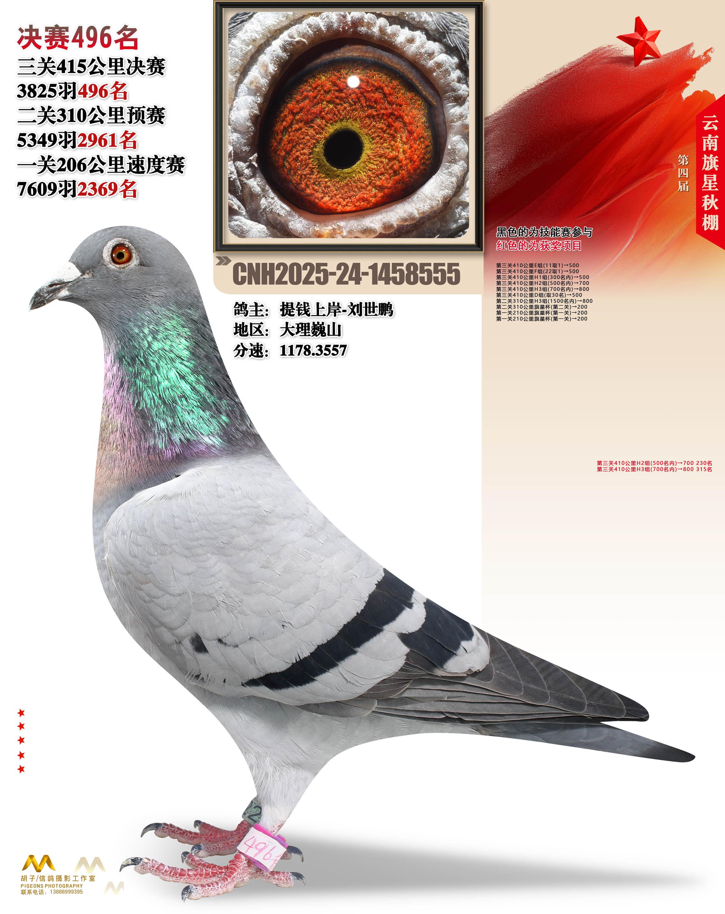 云南大理旗星赛鸽中心2025决赛496名提钱上岸-刘世鹏24-1458555大理巍山获奖鸽展示!