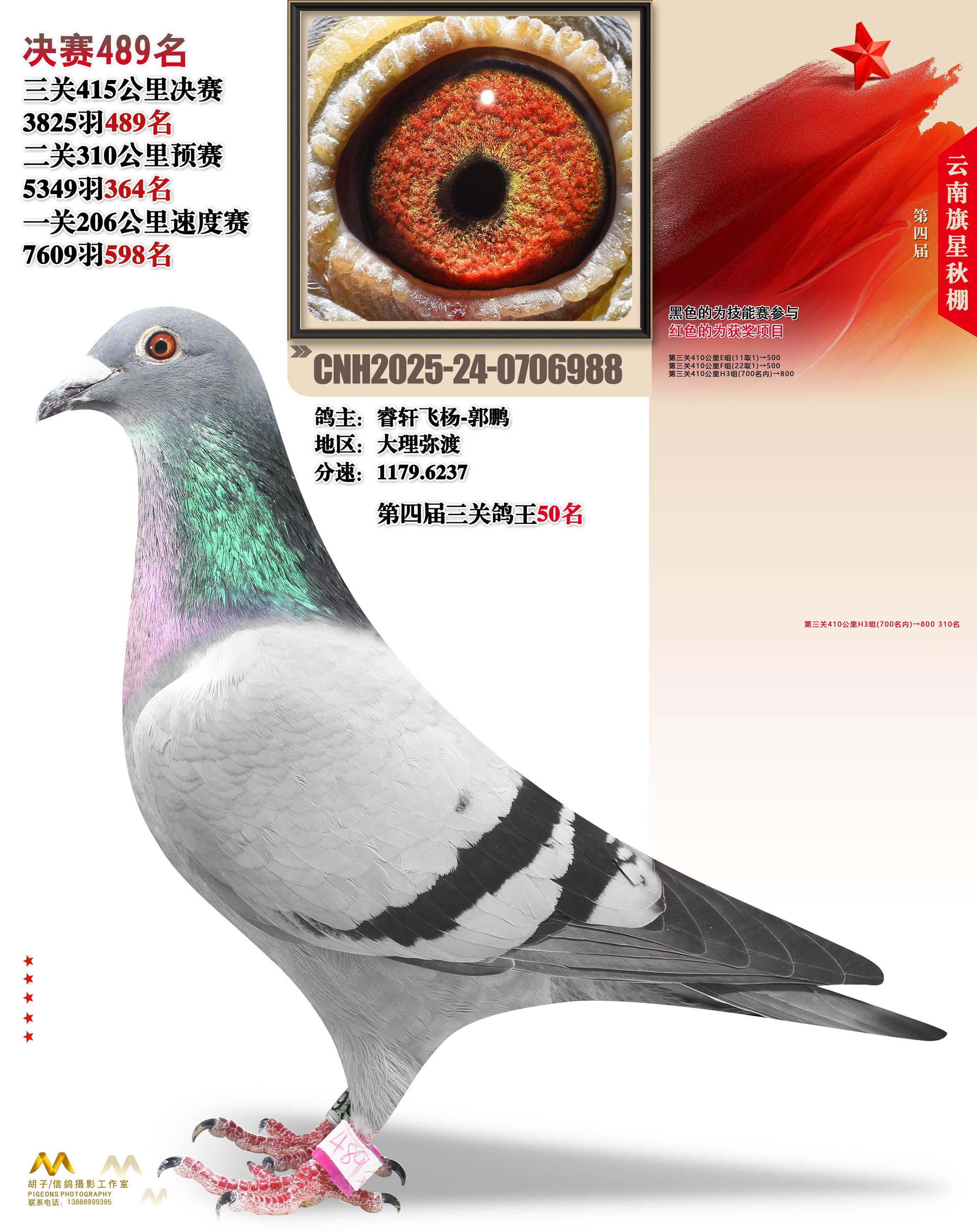云南大理旗星赛鸽中心2025决赛489名睿轩飞杨-郭鹏24-0706988大理弥渡获奖鸽展示!
