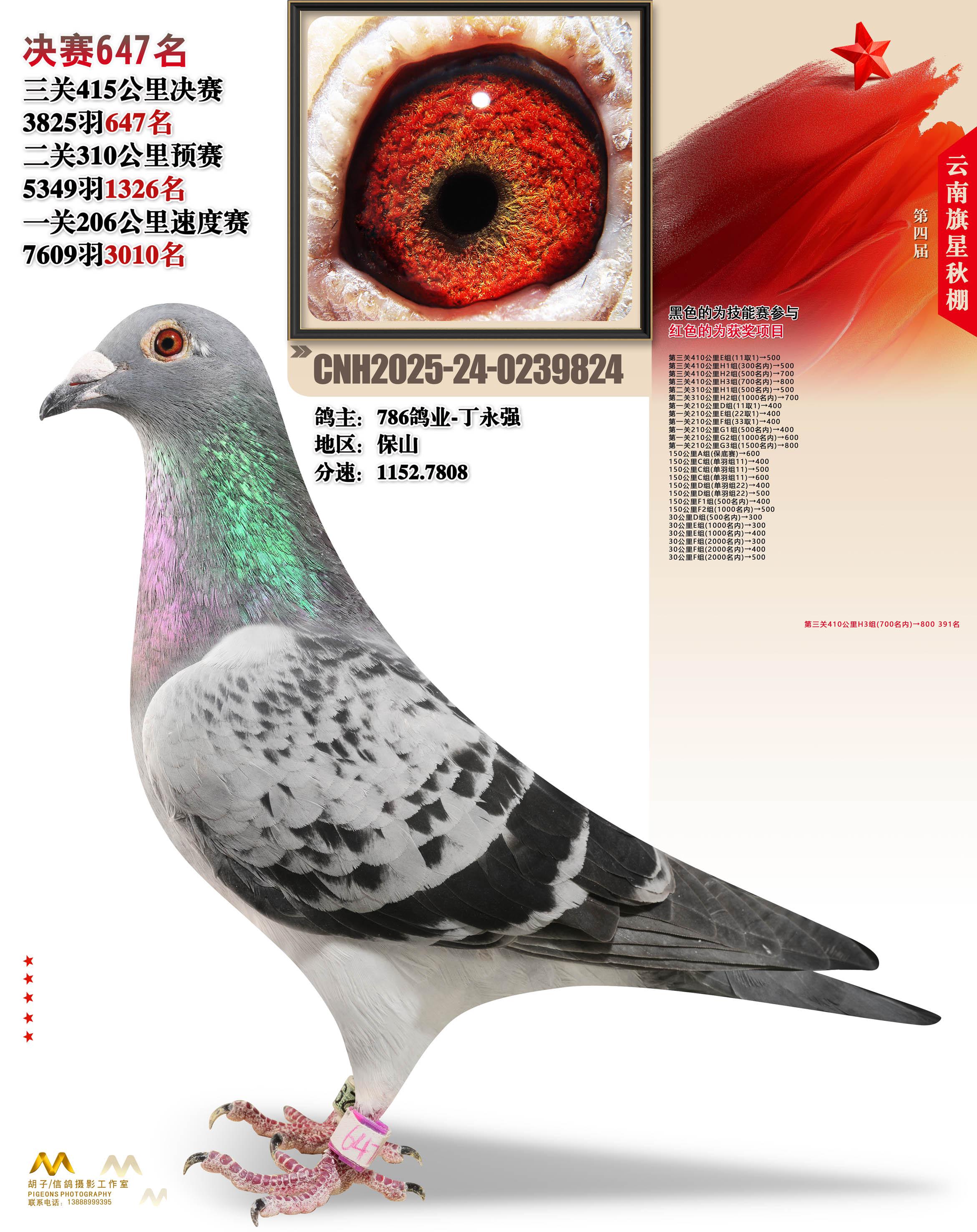 云南大理旗星赛鸽中心2025决赛647名786鸽业-丁永强24-0239824保山获奖鸽展示!