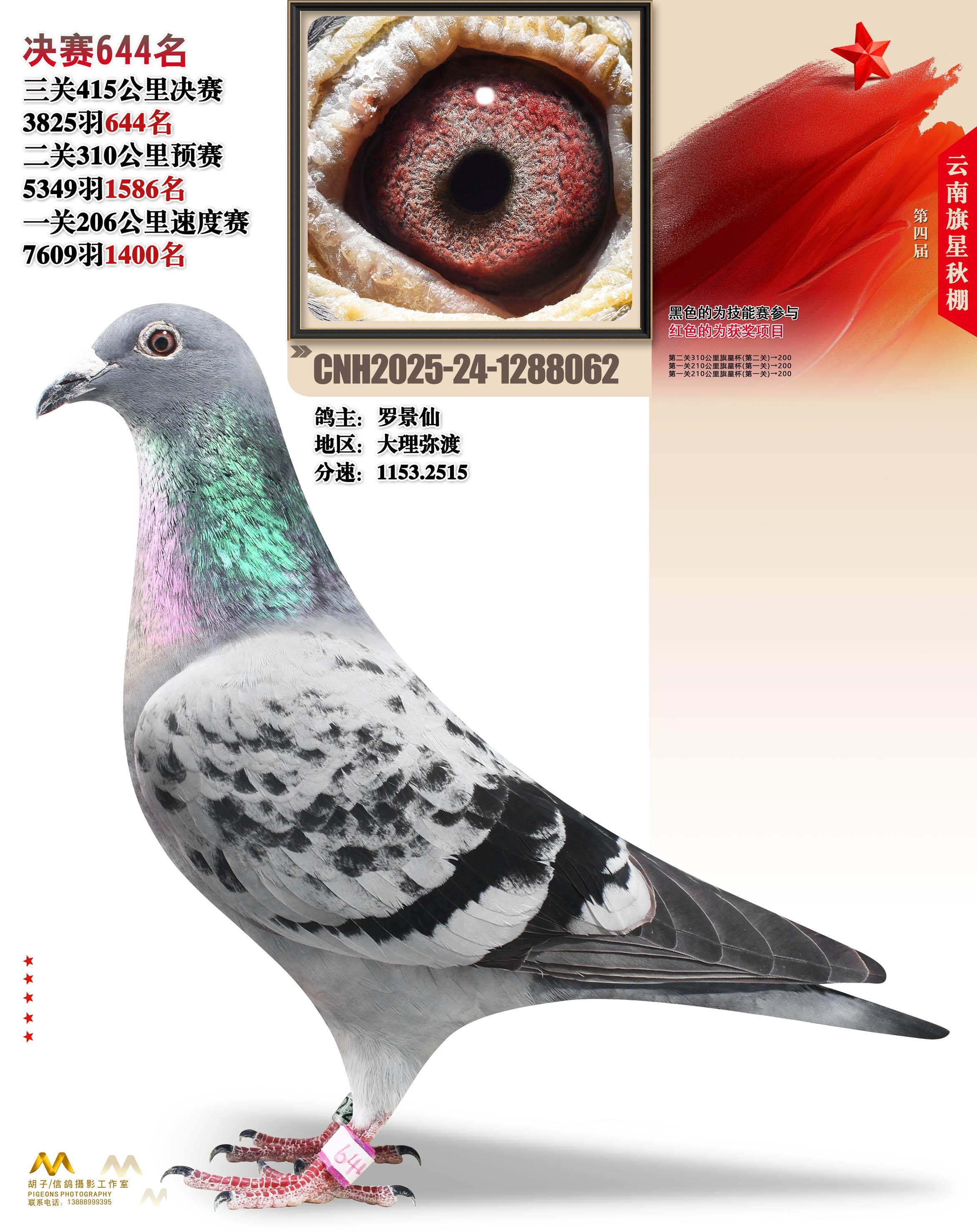 云南大理旗星赛鸽中心2025决赛644名罗景仙24-1288062大理弥渡获奖鸽展示!