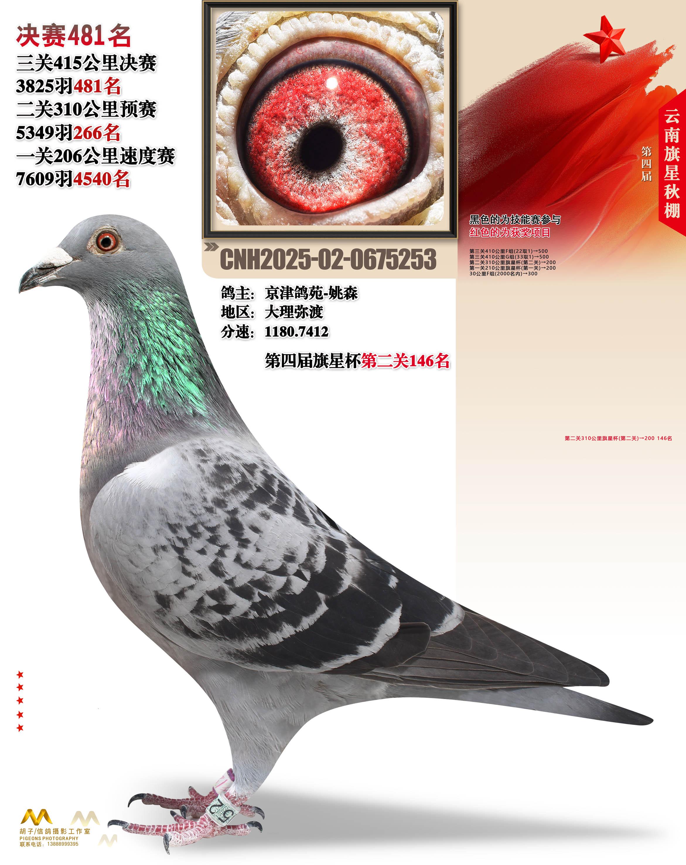 云南大理旗星赛鸽中心2025决赛481名京津鸽苑-姚森02-0675253大理弥渡获奖鸽展示!