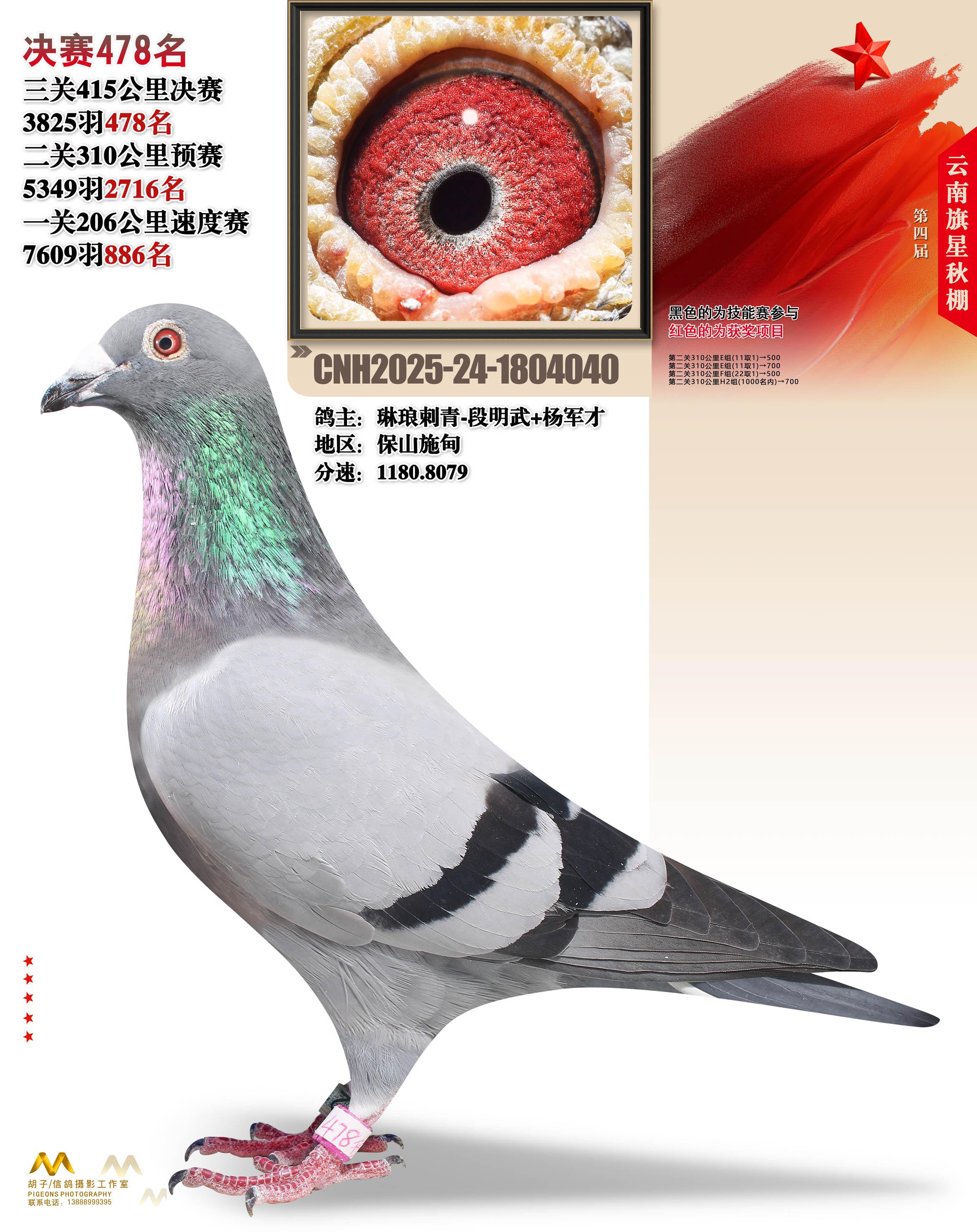 云南大理旗星赛鸽中心2025决赛478名琳琅刺青-段明武+杨军才24-1804040保山施甸获奖鸽展示!