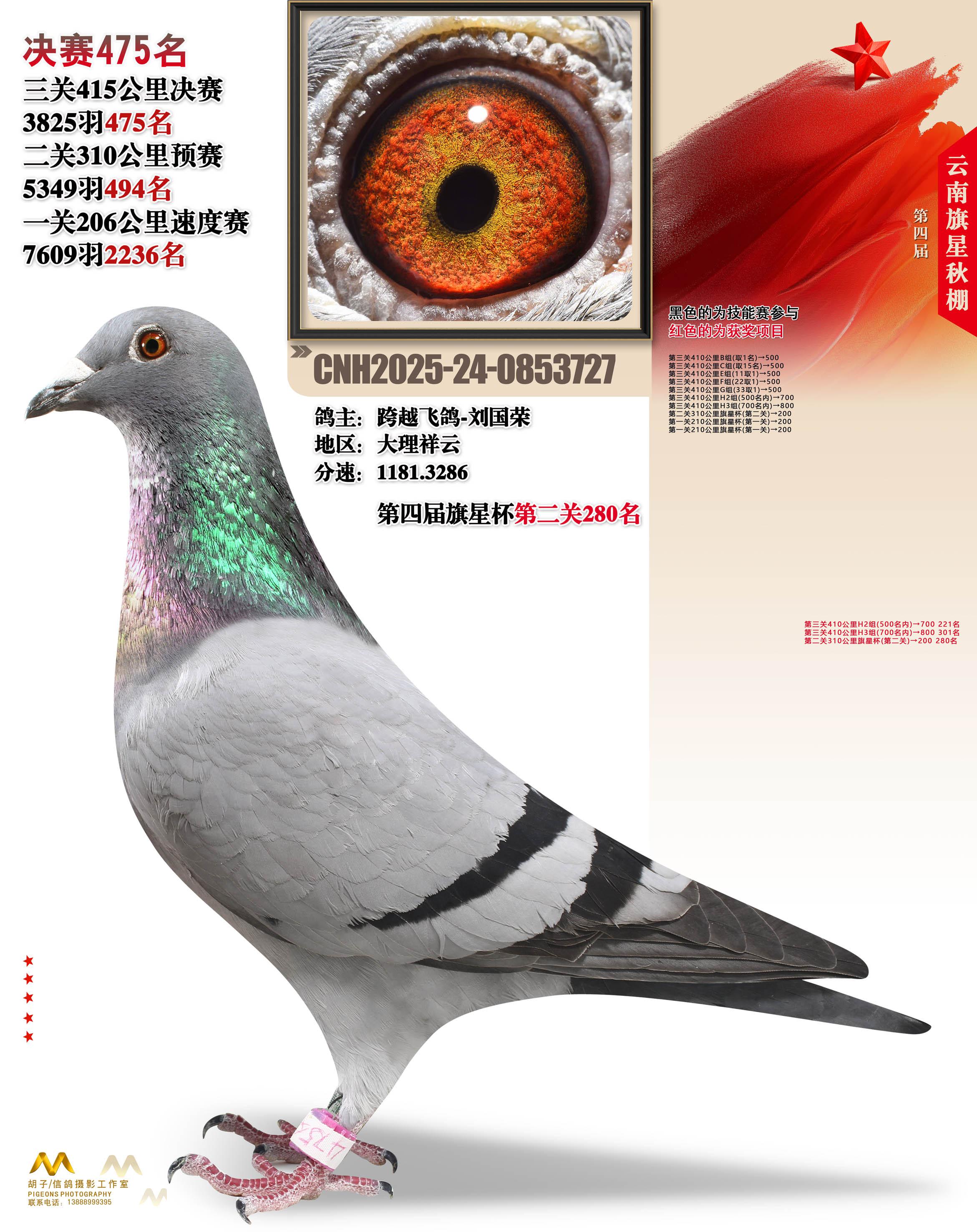 云南大理旗星赛鸽中心2025决赛475名跨越飞鸽-刘国荣24-0853727大理祥云获奖鸽展示!