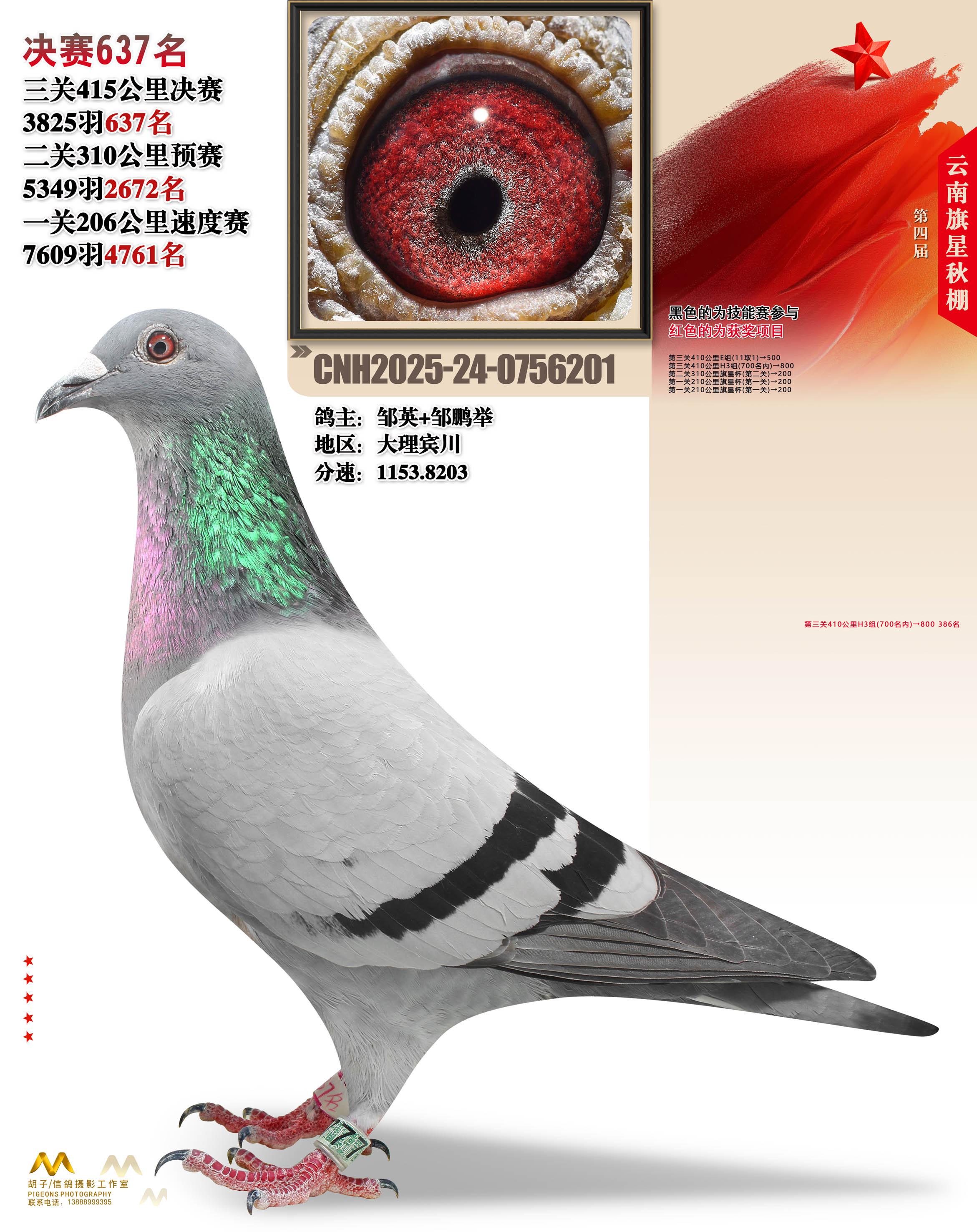 云南大理旗星赛鸽中心2025决赛637名邹英+邹鹏举24-0756201大理宾川获奖鸽展示!