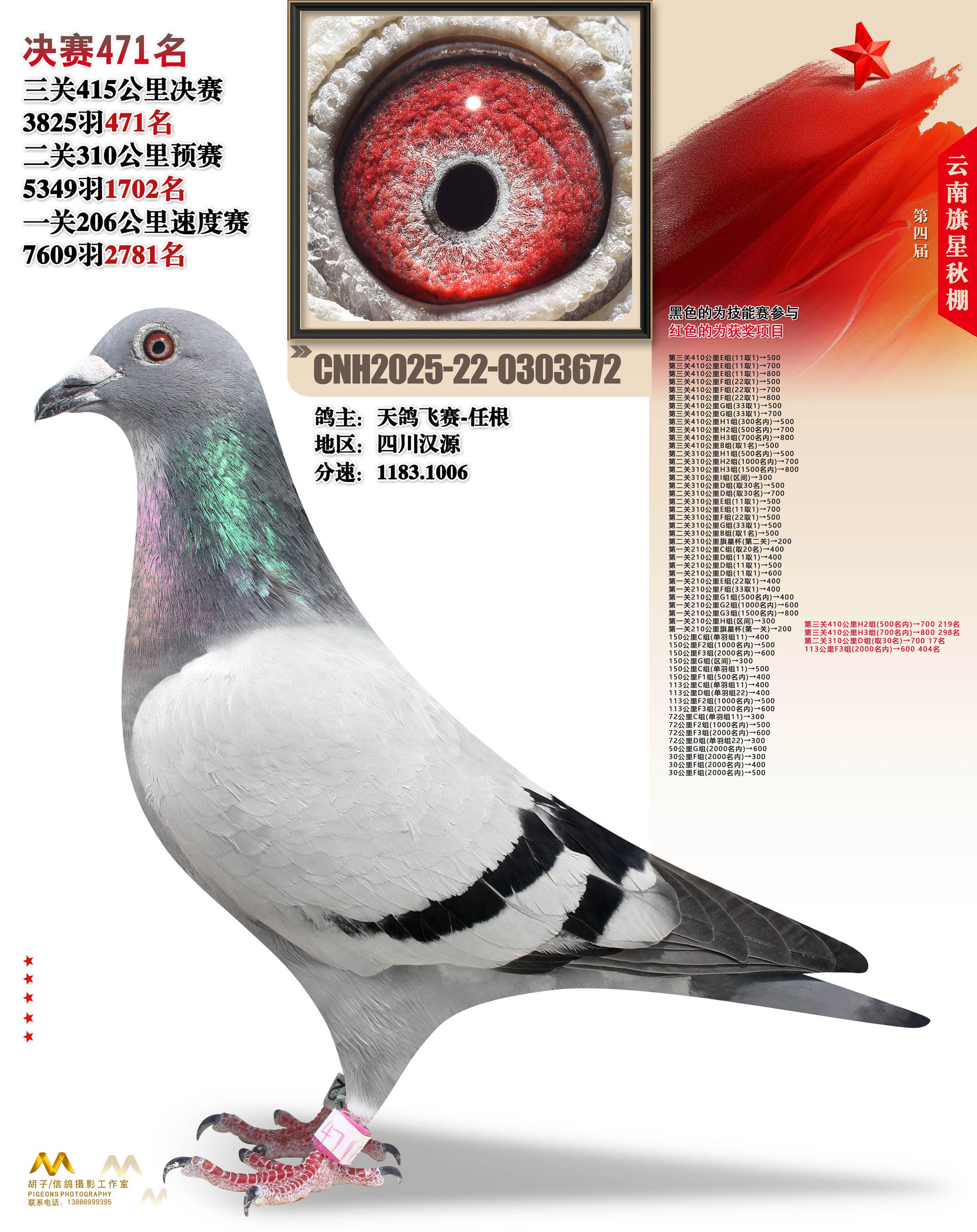 云南大理旗星赛鸽中心2025决赛471名天鸽飞赛-任根22-0303672四川汉源获奖鸽展示!