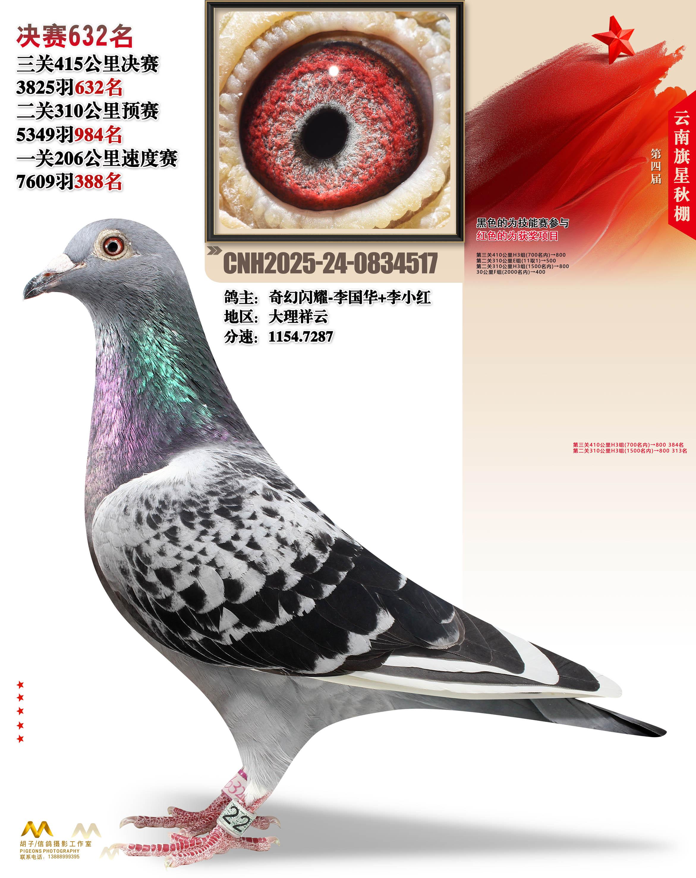 云南大理旗星赛鸽中心2025决赛632名奇幻闪耀-李国华+李小红24-0834517大理祥云获奖鸽展示!
