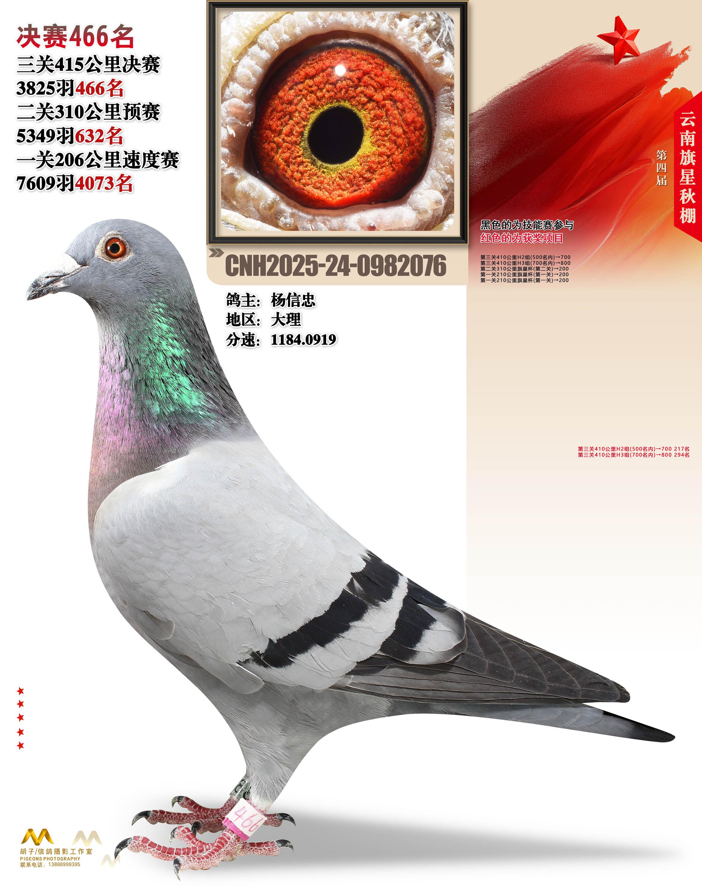 云南大理旗星赛鸽中心2025决赛466名杨信忠24-0982076大理获奖鸽展示!