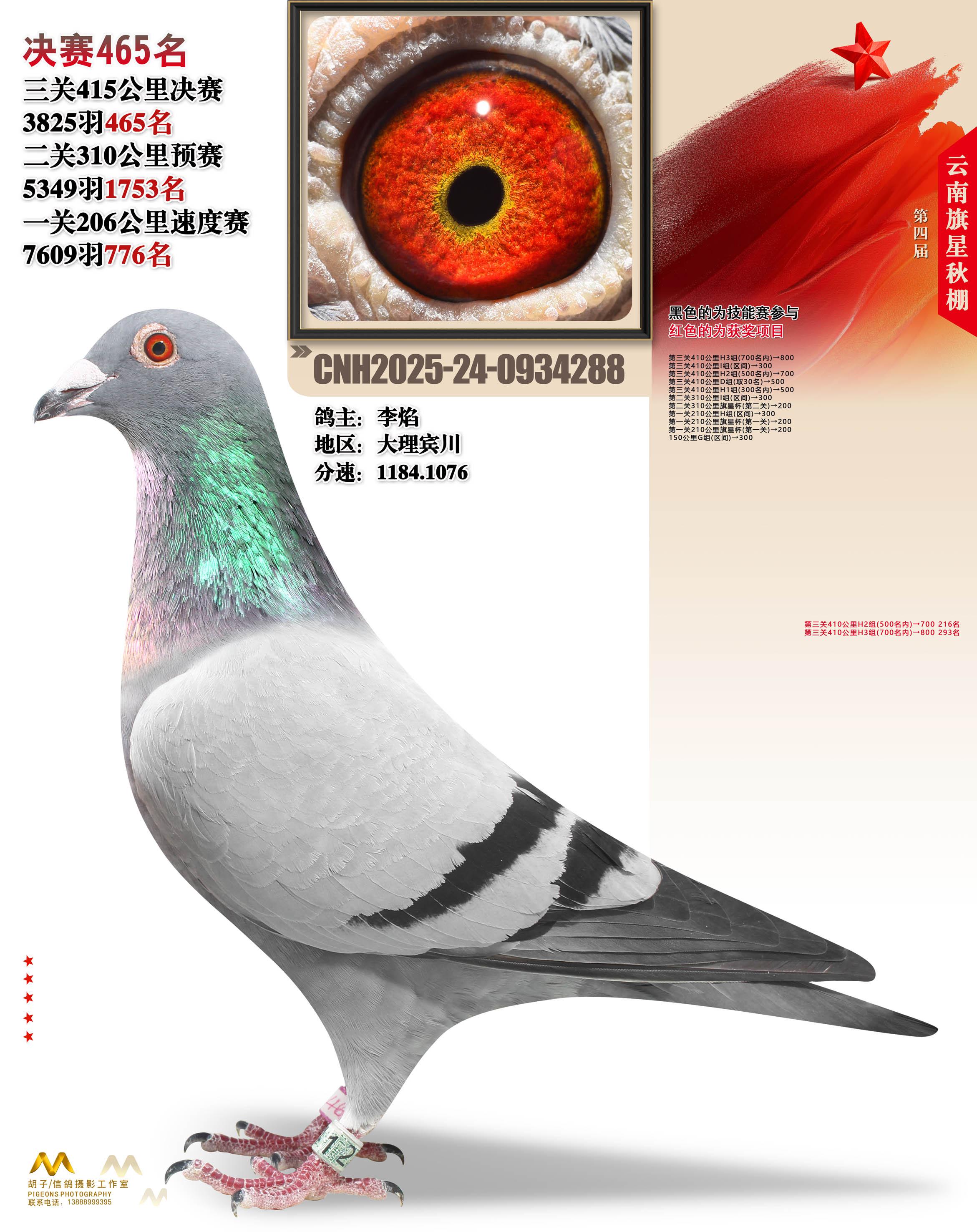 云南大理旗星赛鸽中心2025决赛465名李焰24-0934288大理宾川获奖鸽展示!