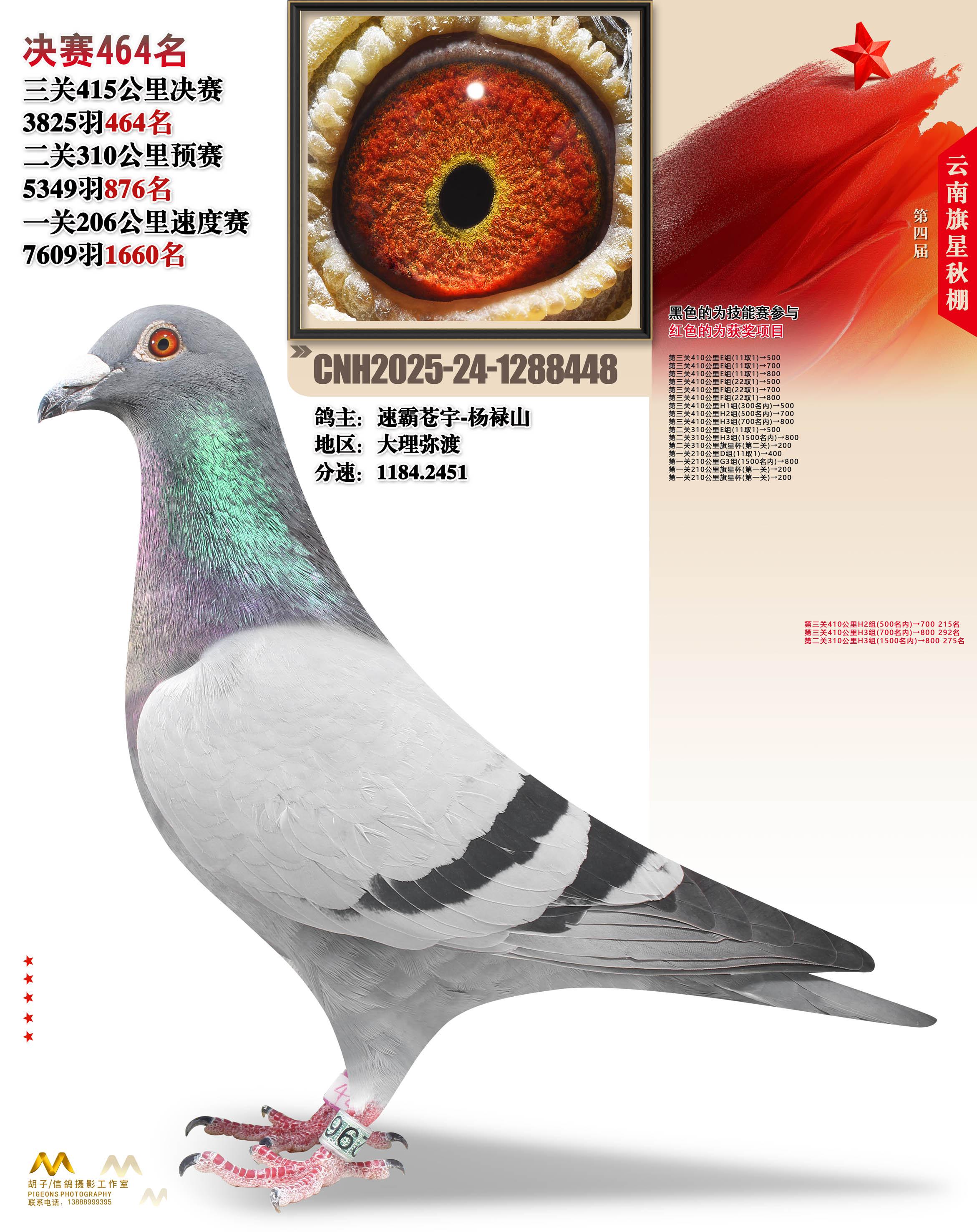 云南大理旗星赛鸽中心2025决赛464名速霸苍宇-杨禄山24-1288448大理弥渡获奖鸽展示!