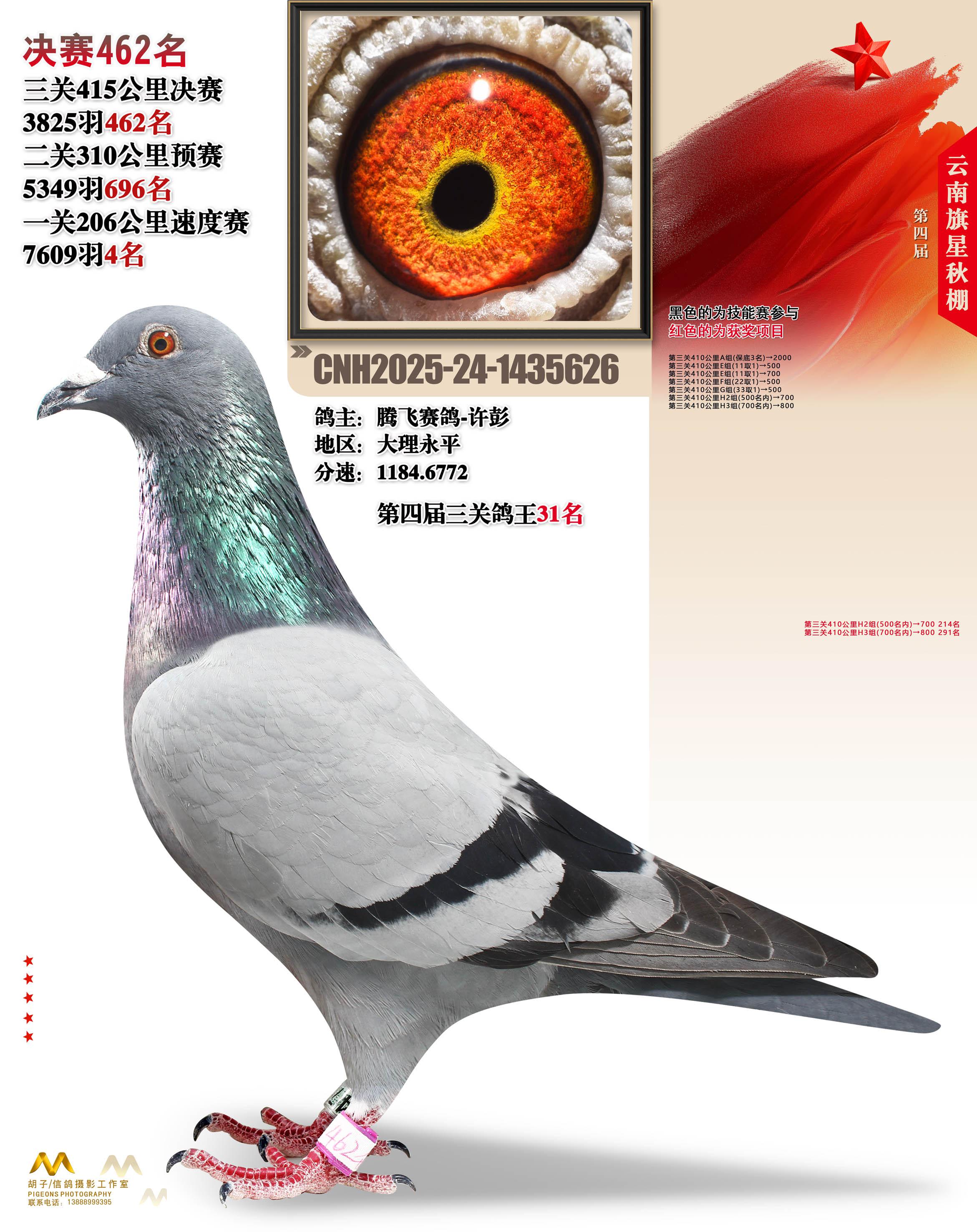 云南大理旗星赛鸽中心2025决赛462名腾飞赛鸽-许彭24-1435626大理永平获奖鸽展示!
