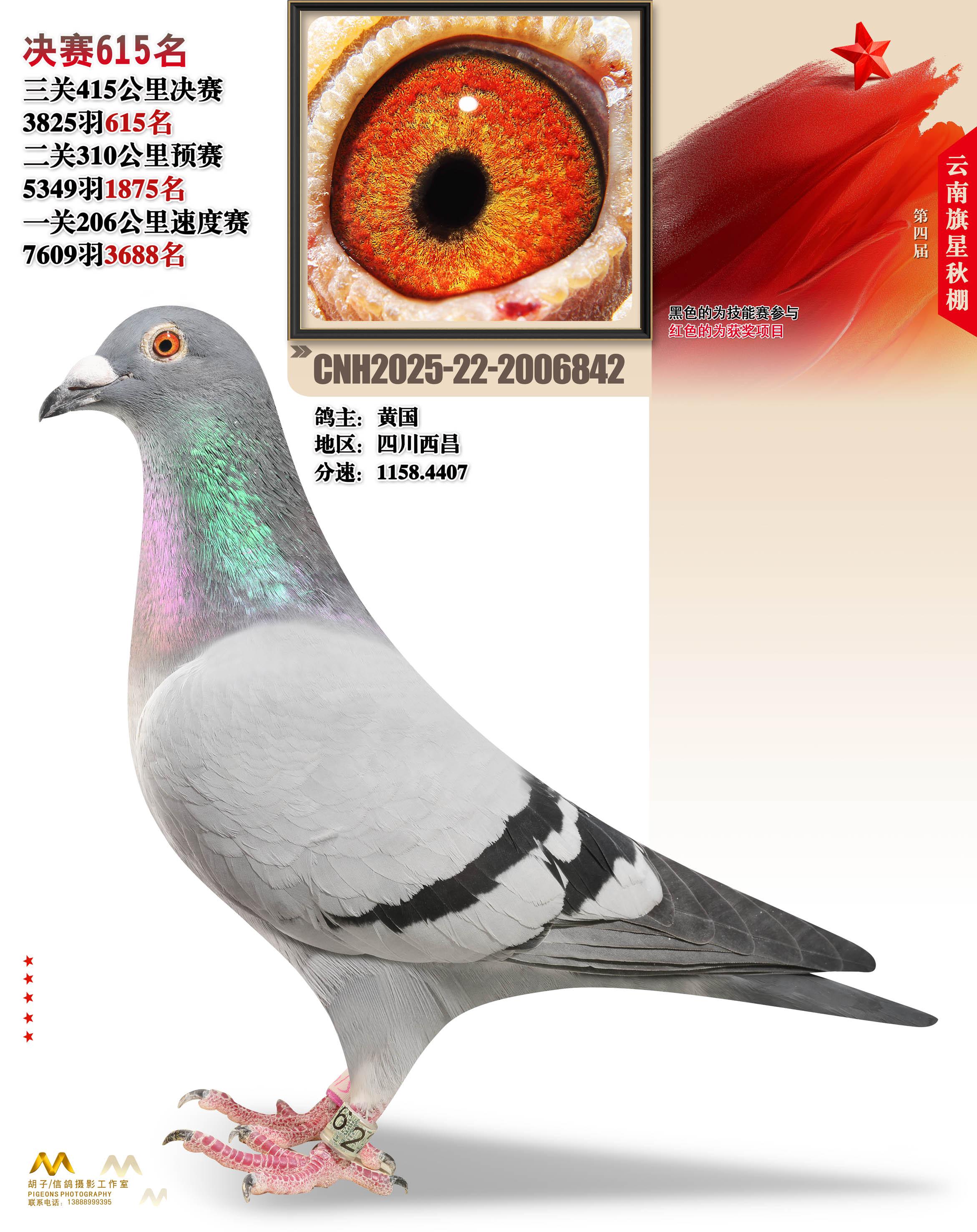云南大理旗星赛鸽中心2025决赛615名黄国22-2006842四川西昌获奖鸽展示!