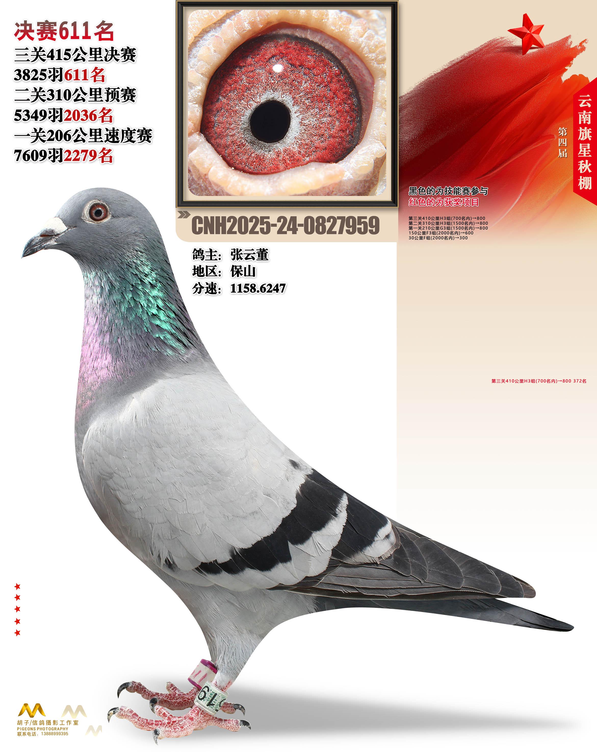 云南大理旗星赛鸽中心2025决赛611名张云董24-0827959保山获奖鸽展示!