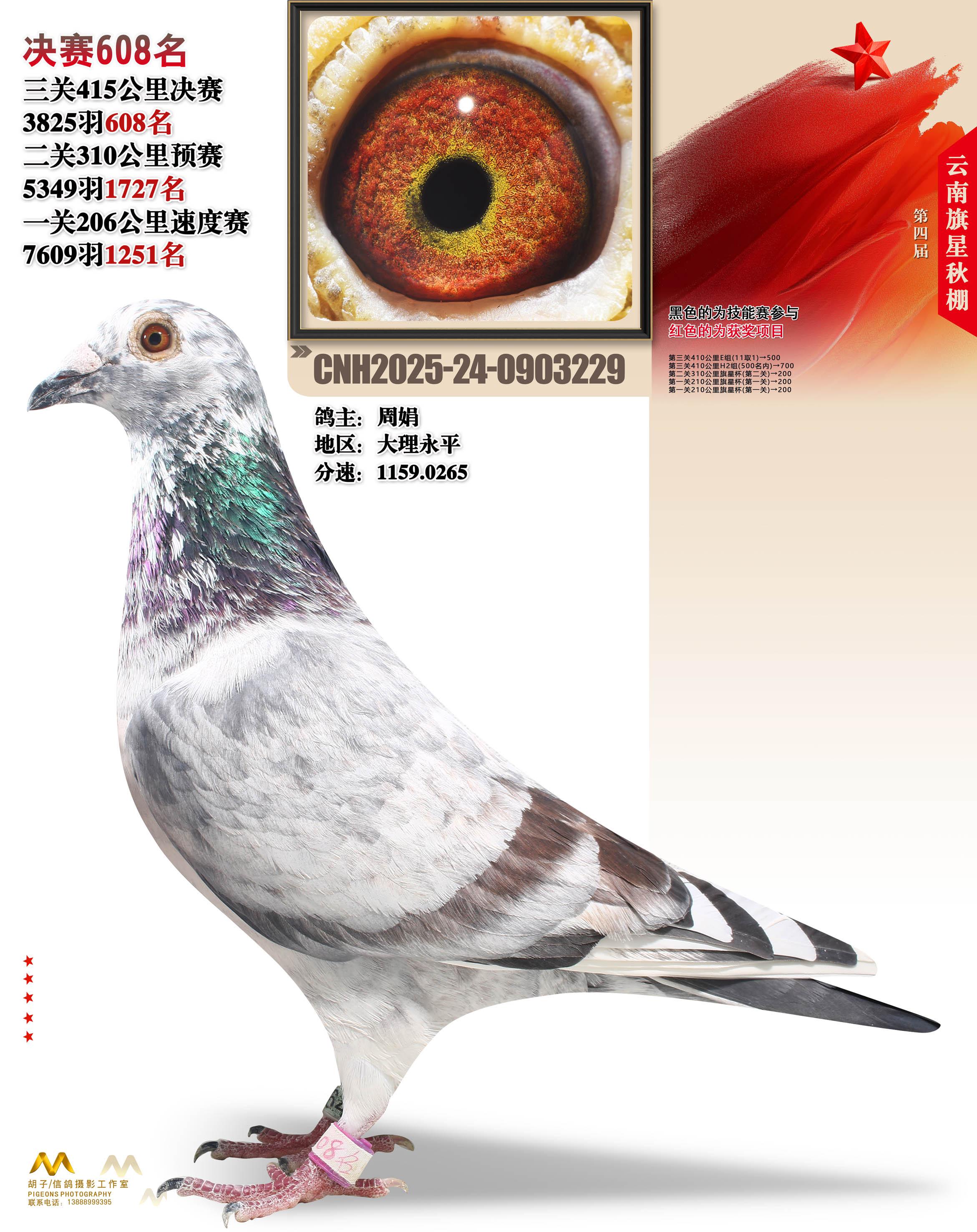 云南大理旗星赛鸽中心2025决赛608名周娟24-0903229大理永平获奖鸽展示!