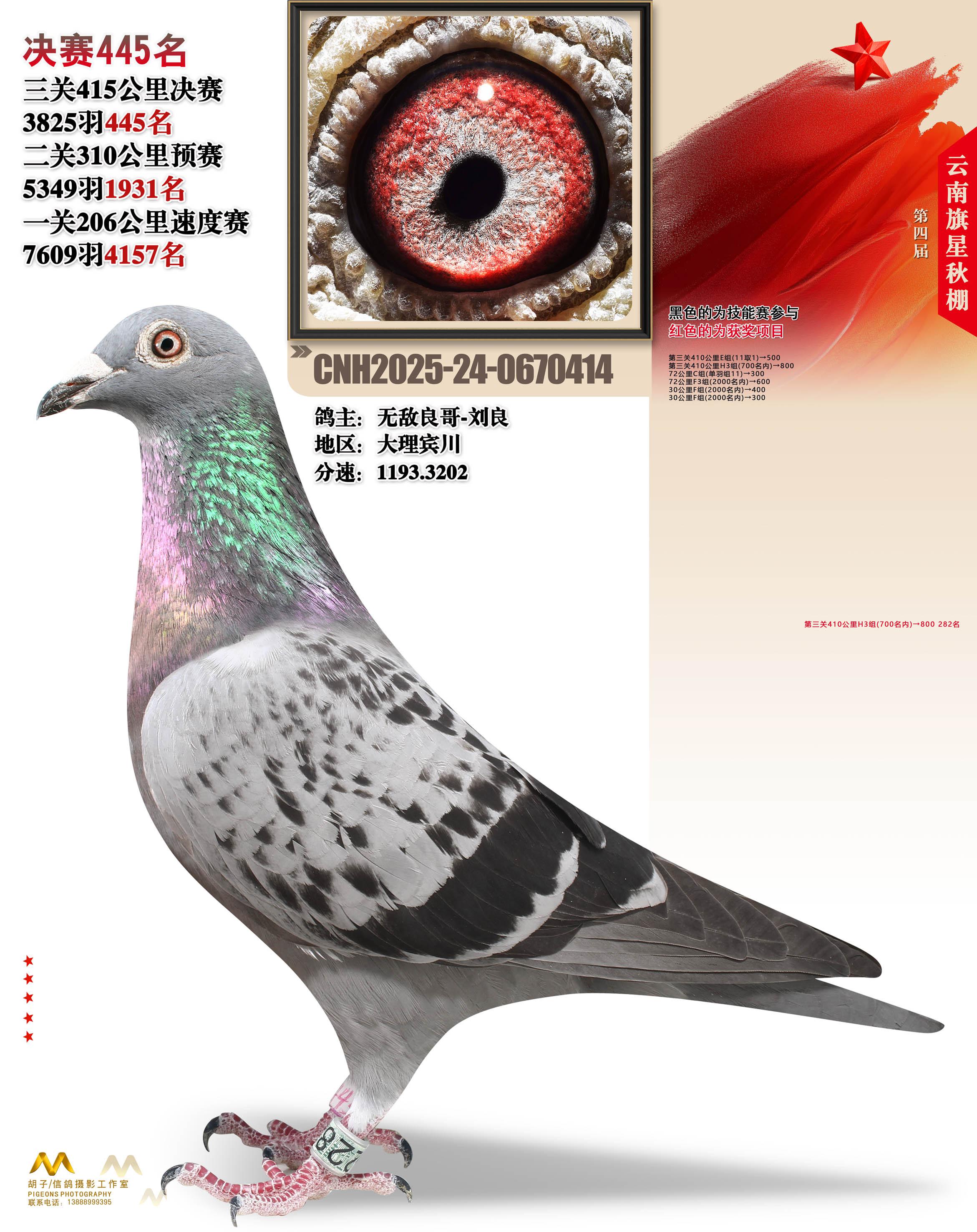 云南大理旗星赛鸽中心2025决赛445名无敌良哥-刘良24-0670414大理宾川获奖鸽展示!