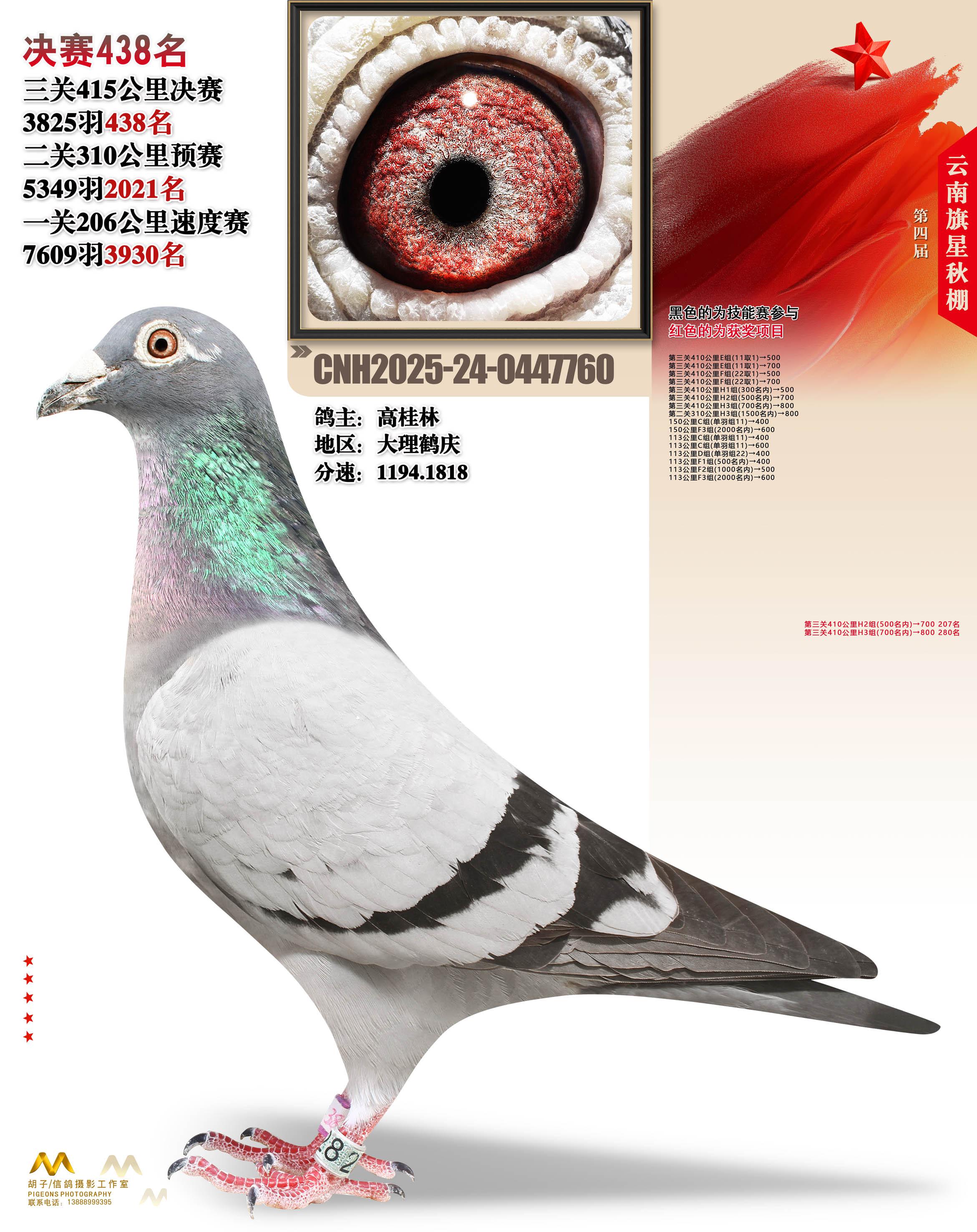 云南大理旗星赛鸽中心2025决赛438名高桂林24-0447760大理鹤庆获奖鸽展示!