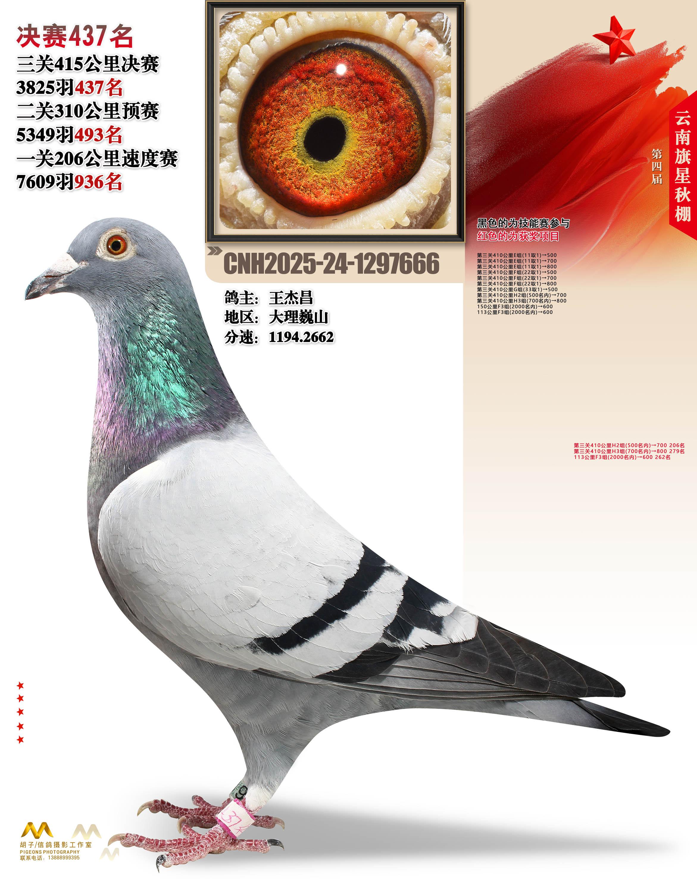 云南大理旗星赛鸽中心2025决赛437名王杰昌24-1297666大理巍山获奖鸽展示!