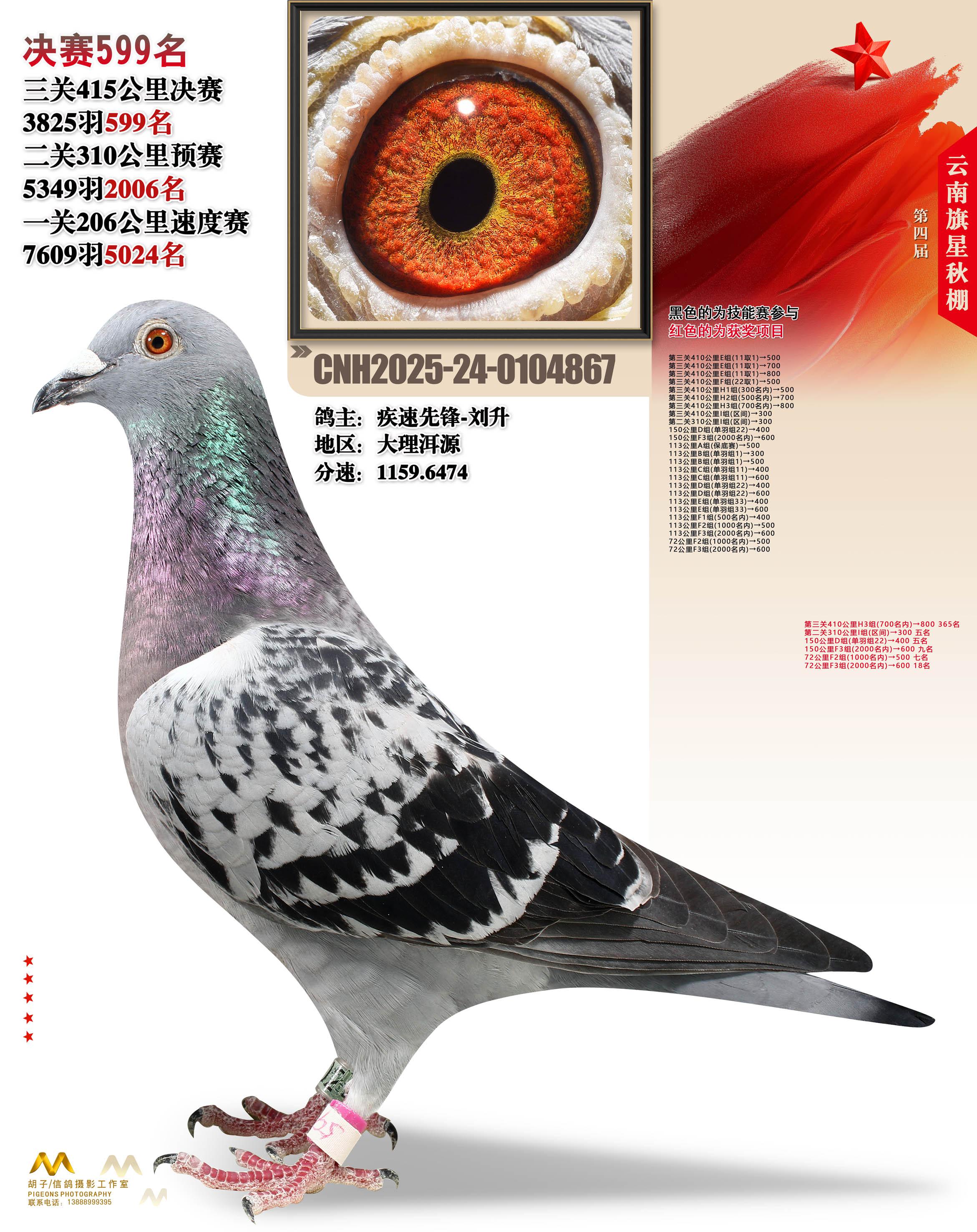 云南大理旗星赛鸽中心2025决赛599名疾速先锋-刘升24-0104867大理洱源获奖鸽展示!